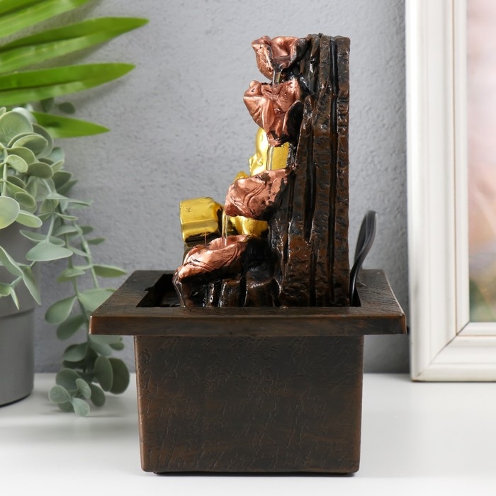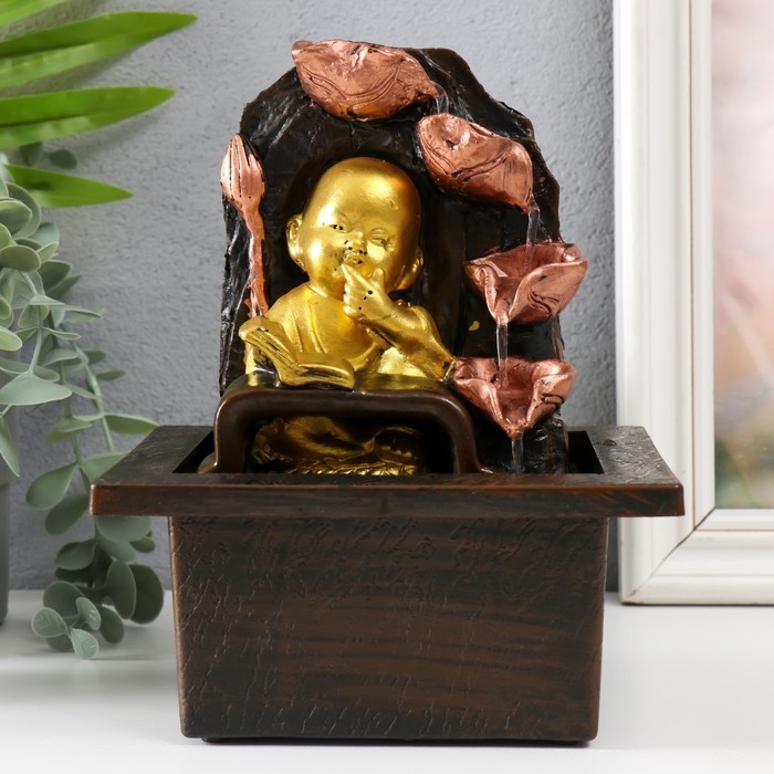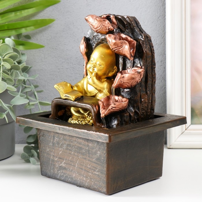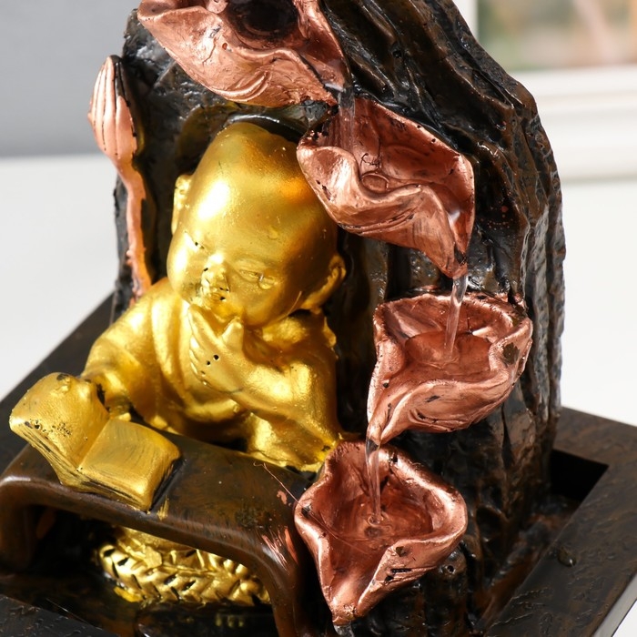 Фонтан настольный от сети "Маленький будда с книгой у фонтана" 13х13х20 см