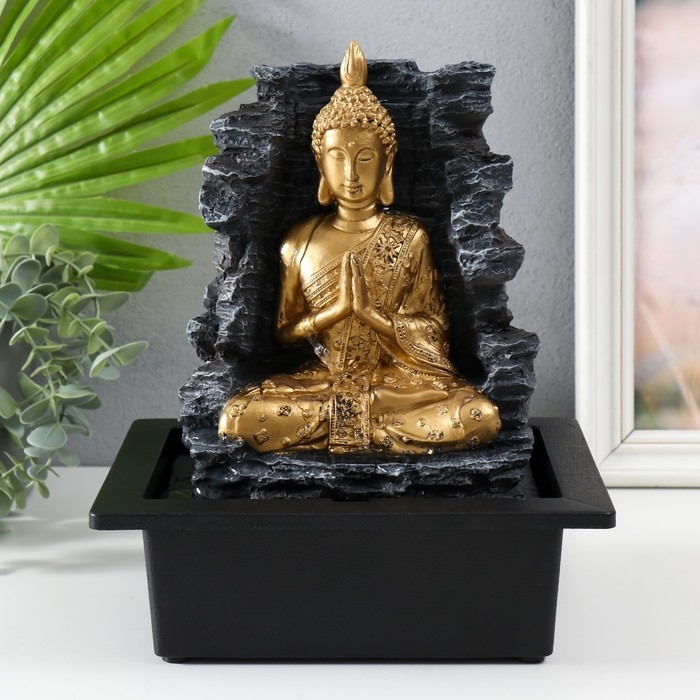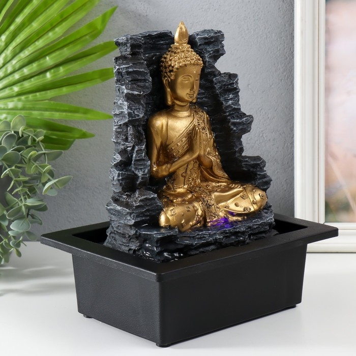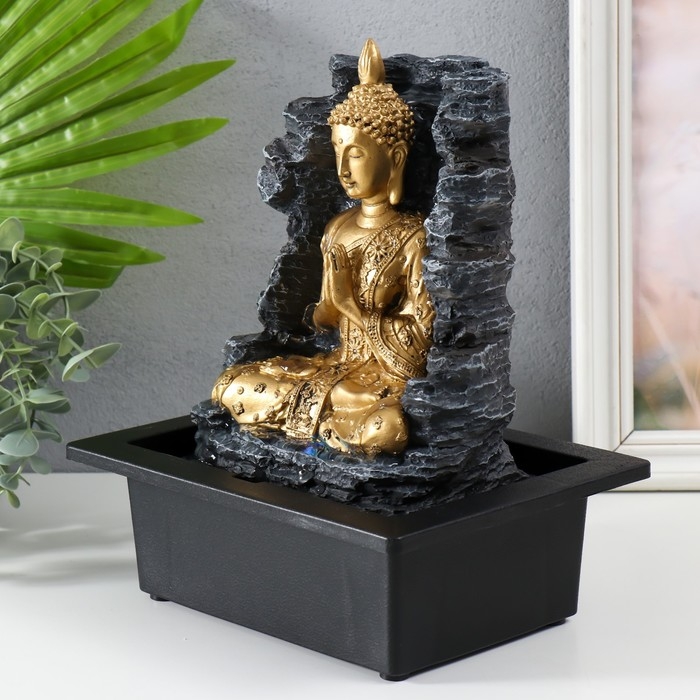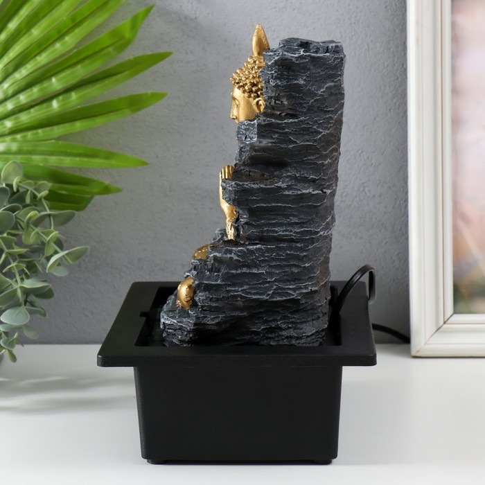 Фонтан настольный от сети, подсветка "Будда у каменной стены" 28х17,5х23 см