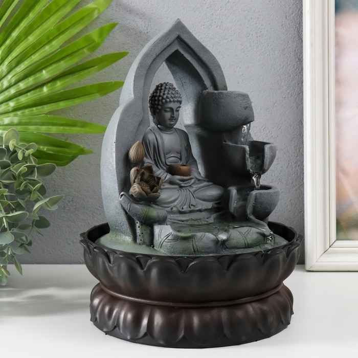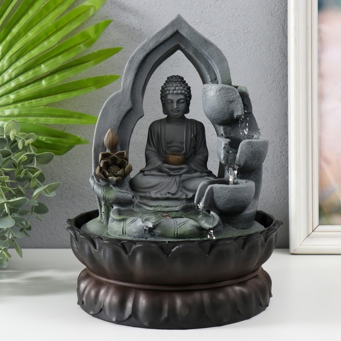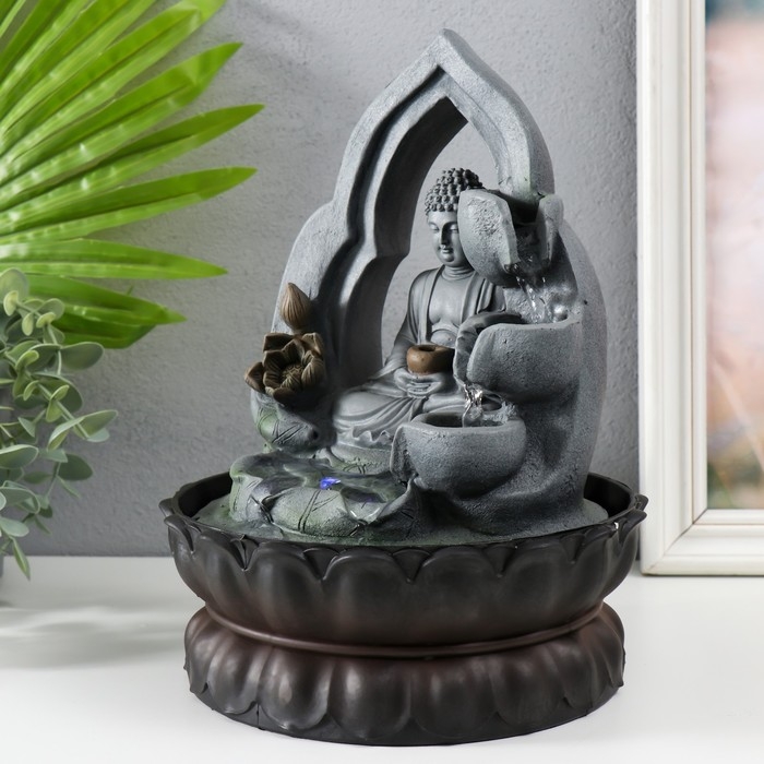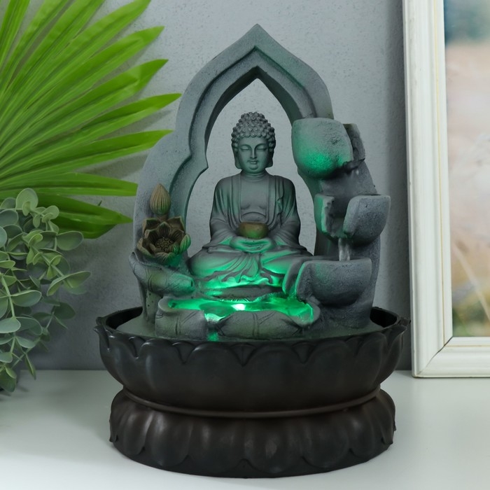 Фонтан настольный от сети, подсветка "Будда в лотосной арке" 27х20х20 см