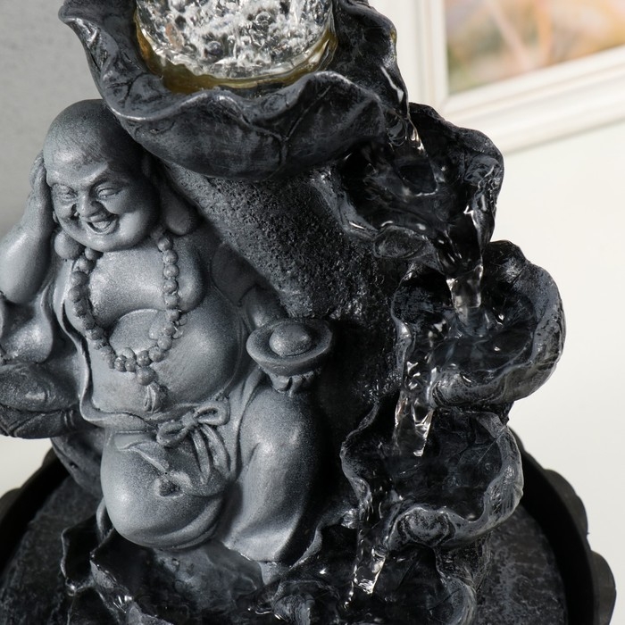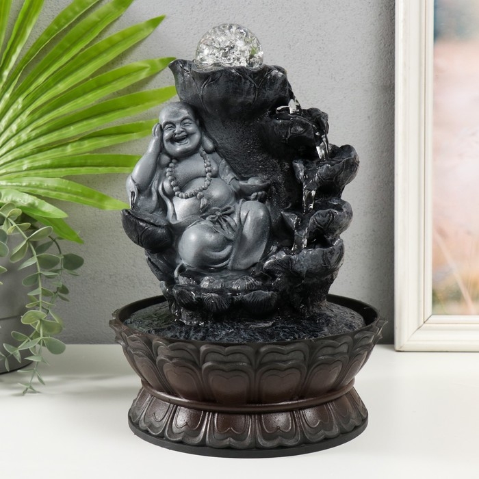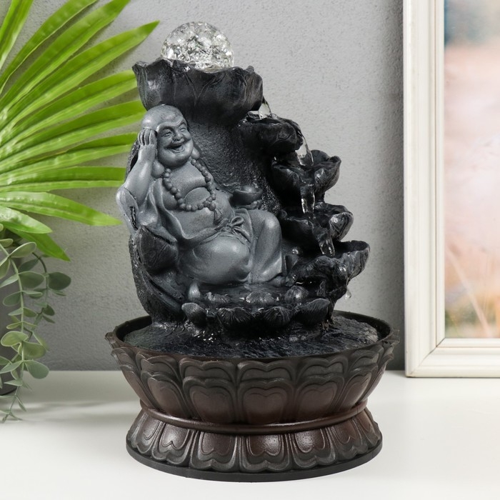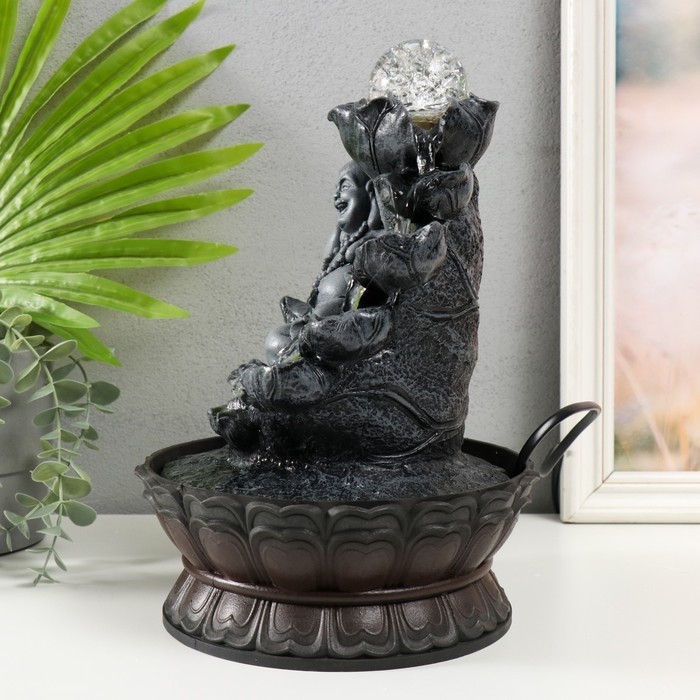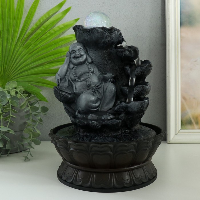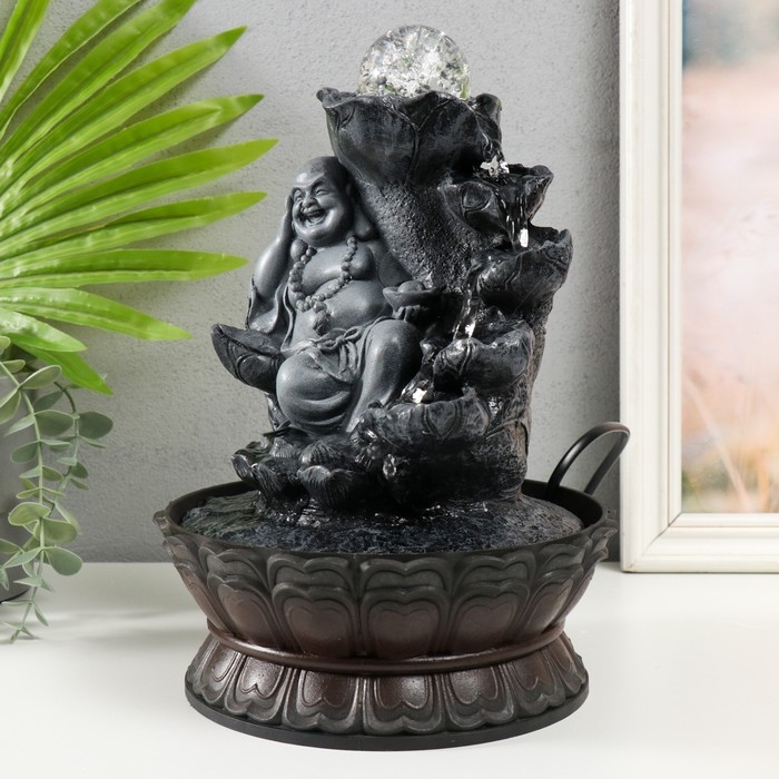 Фонтан настольный от сети, подсветка "Хотей в сером лежит на слитках золота" 21х21х30 см