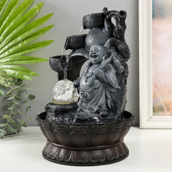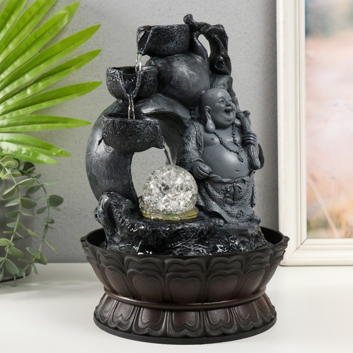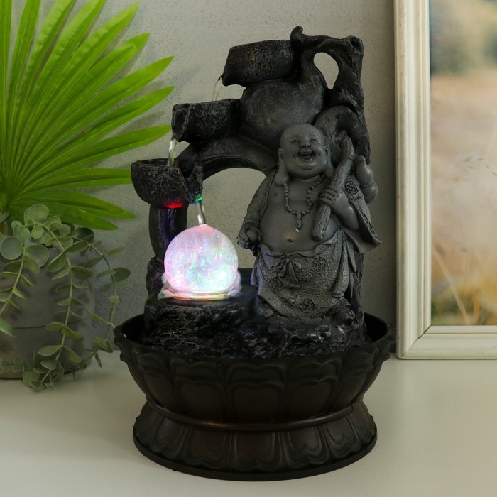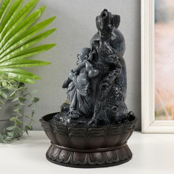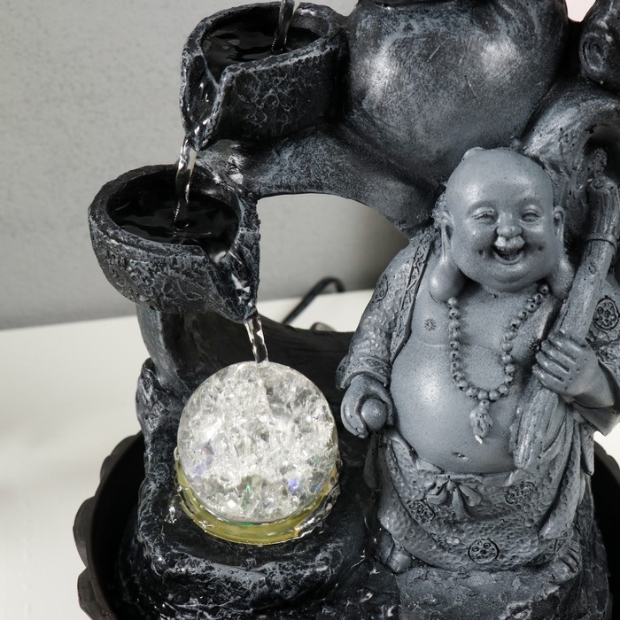 Фонтан настольный от сети, подсветка "Хотей в сером с дарами" 20х20х30 см