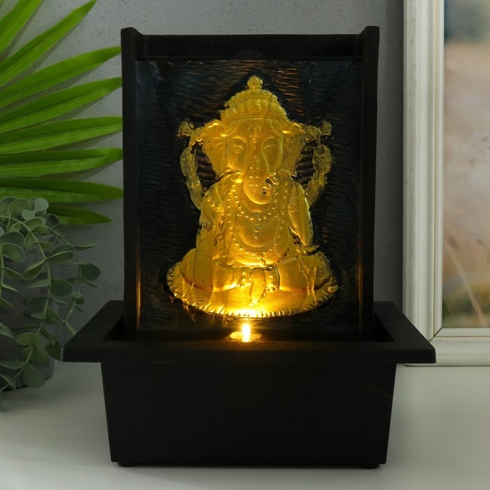 Фонтан настольный от сети, подсветка "Портрет сидящего Ганеша" 21х17х27 см