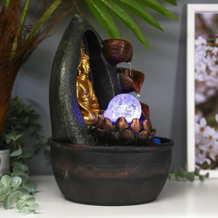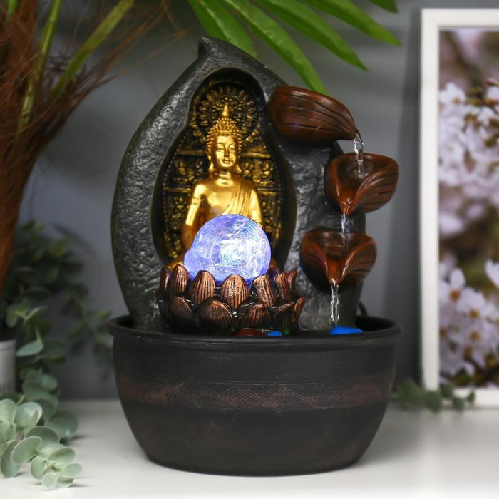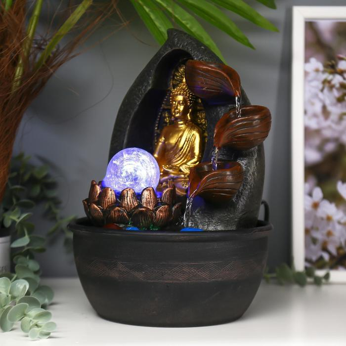 Фонтан настольный от сети, подсветка "Золотой Будда с лотосом у водопада" 28х19х19 см