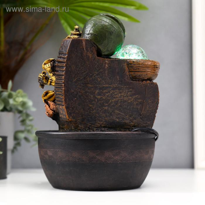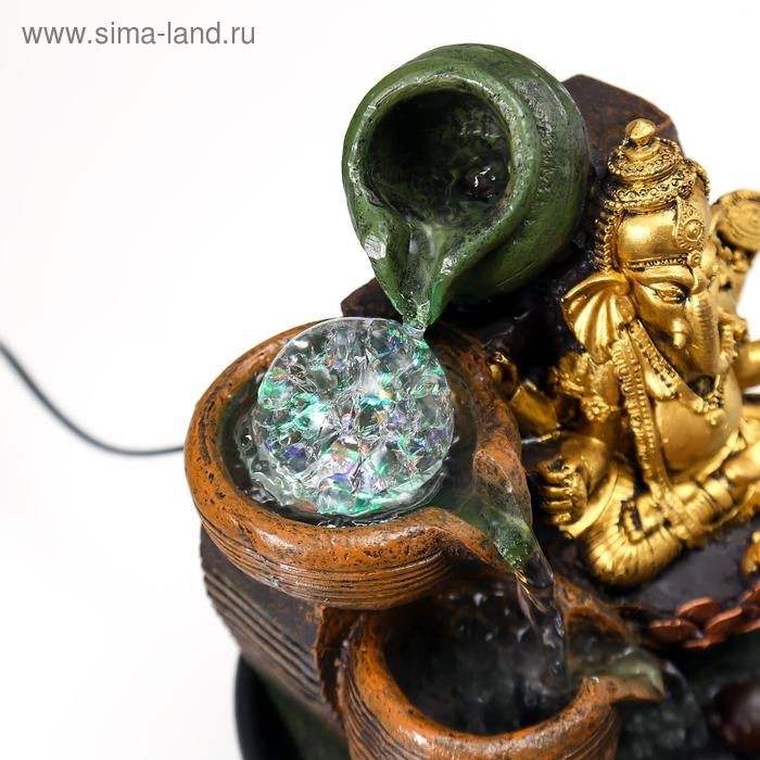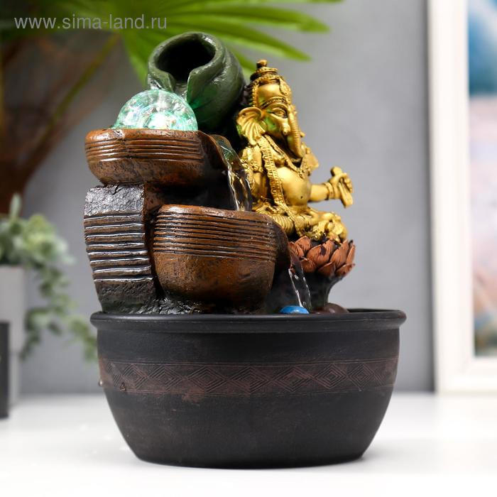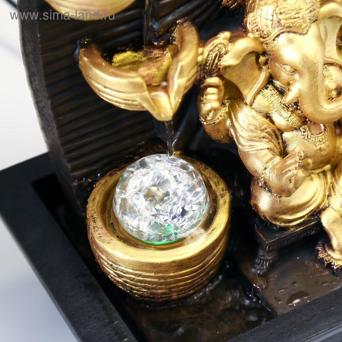 Фонтан настольный от сети, подсветка "Золотой Ганеша в лотосе у водопада" 28х19х19 см