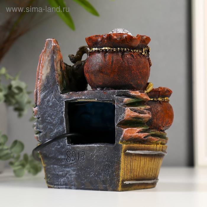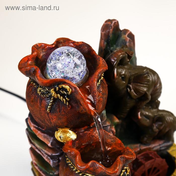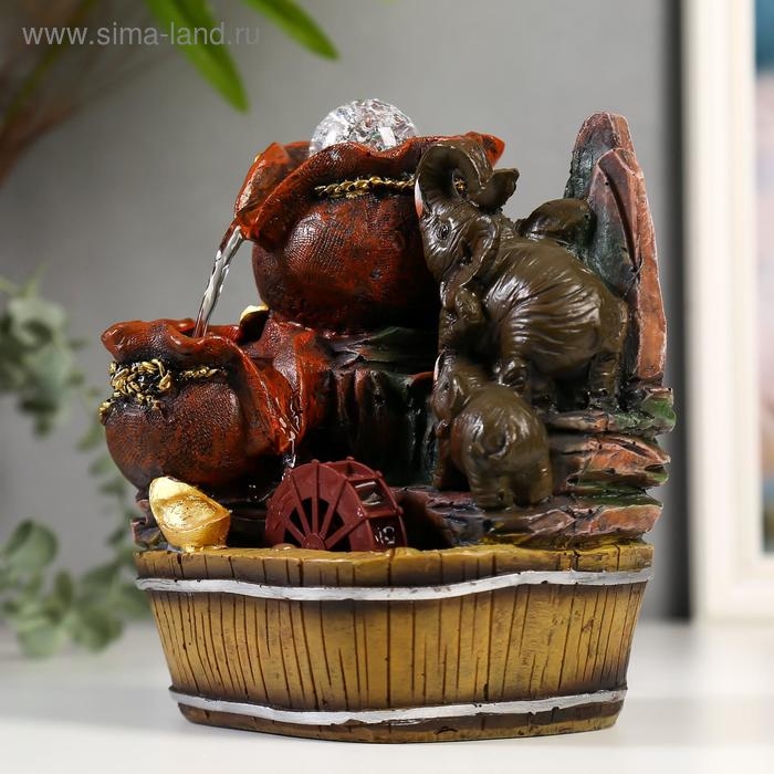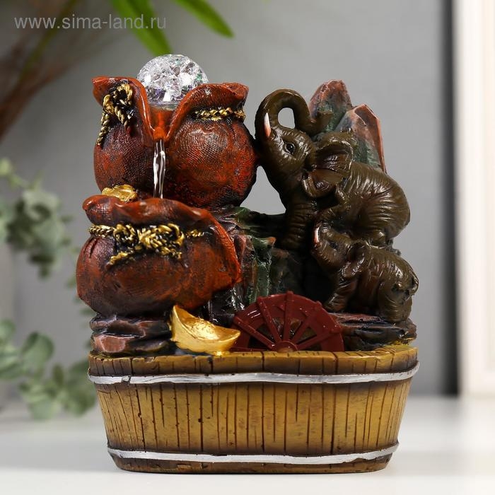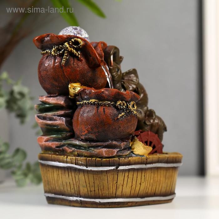 Фонтан настольный полистоун от сети "Слоны с мешками золота" 19х16,5х13 см