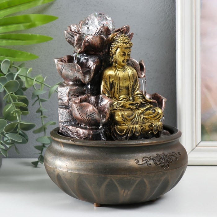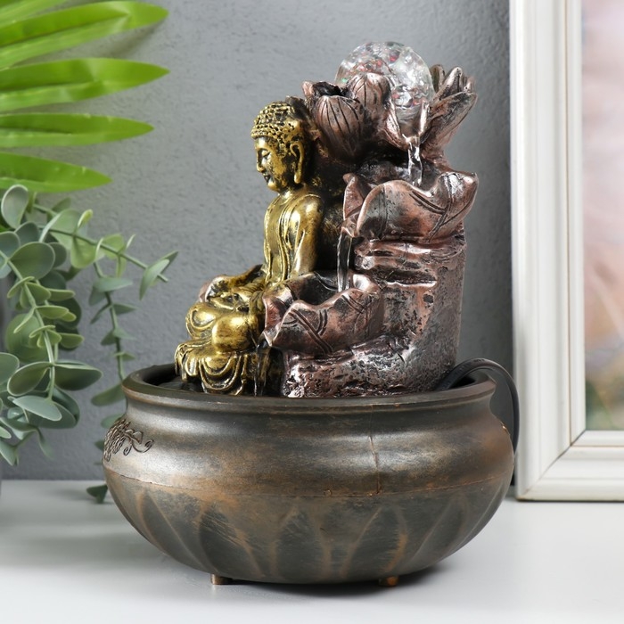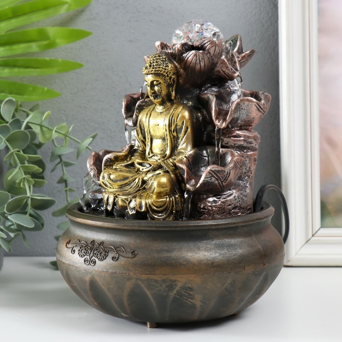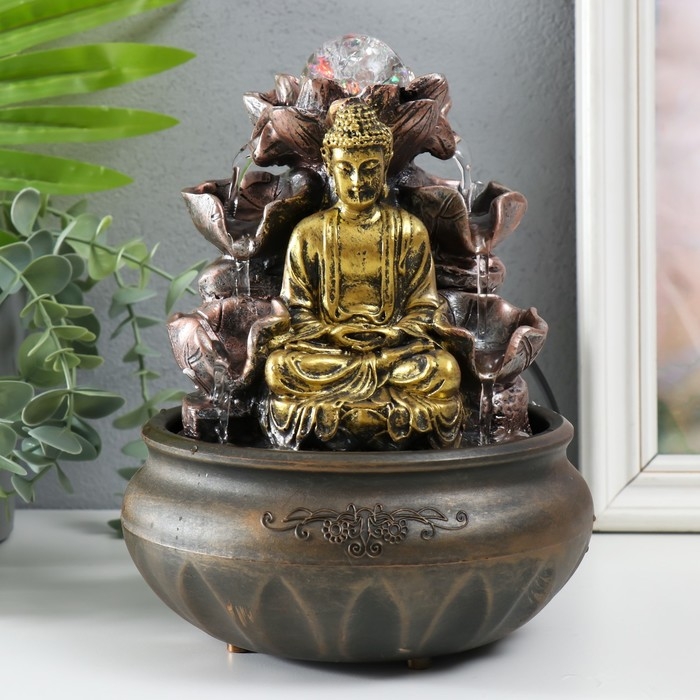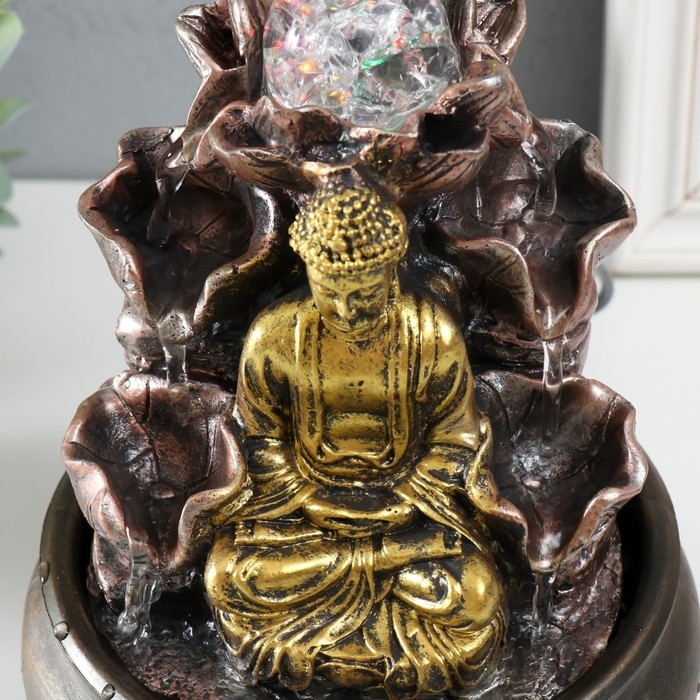Фонтан настольный с подсветкой "Будда у фонтана с лотосом" 16х16х21 см