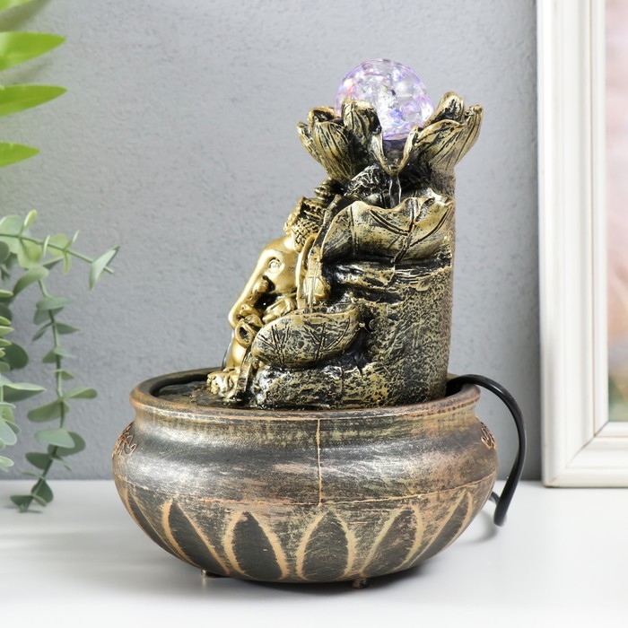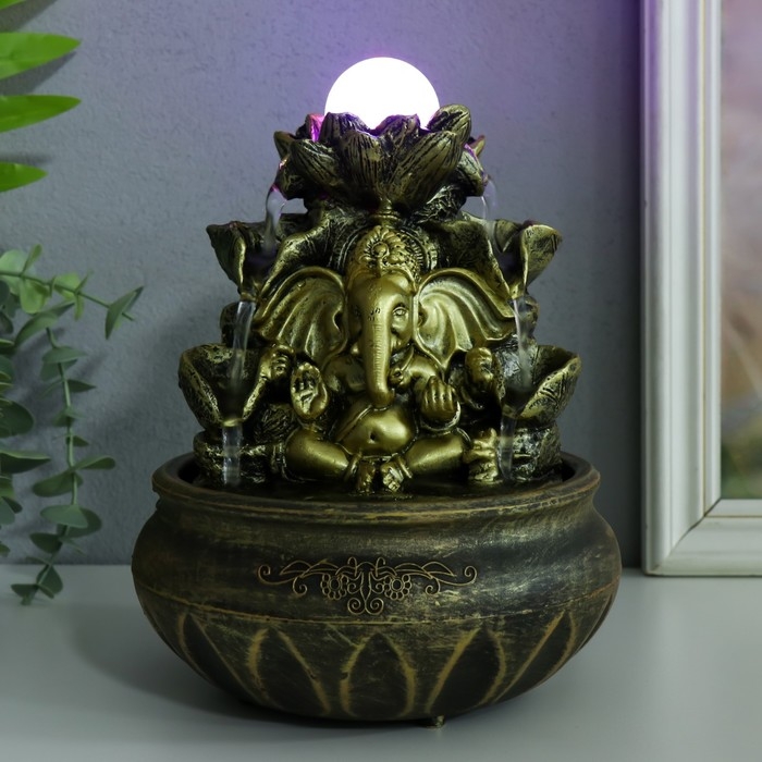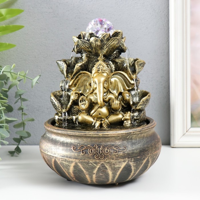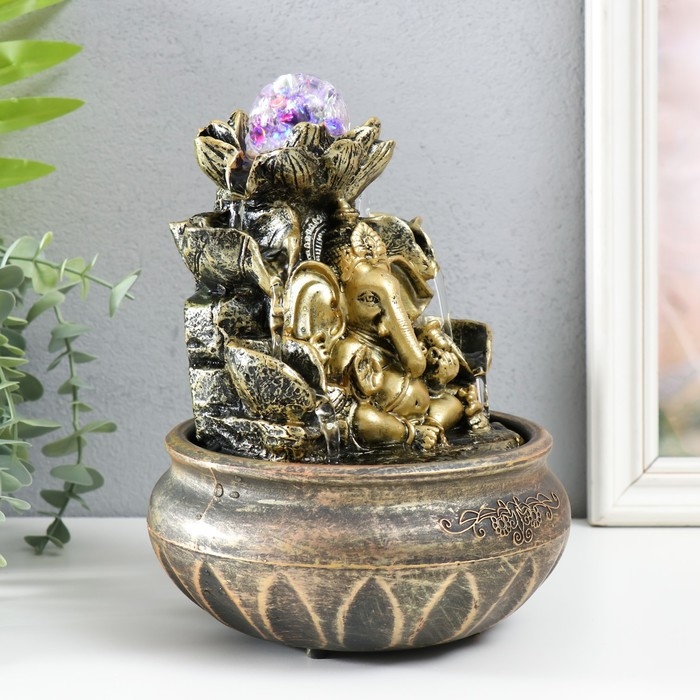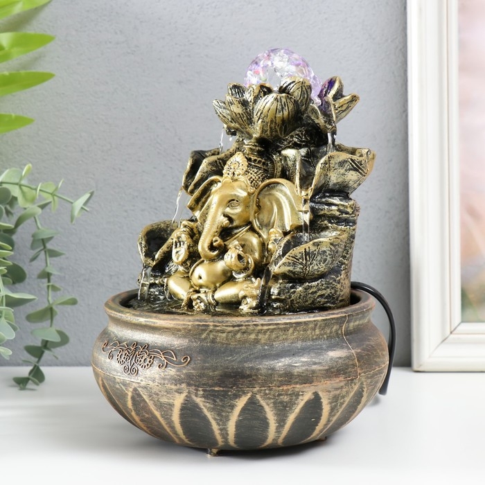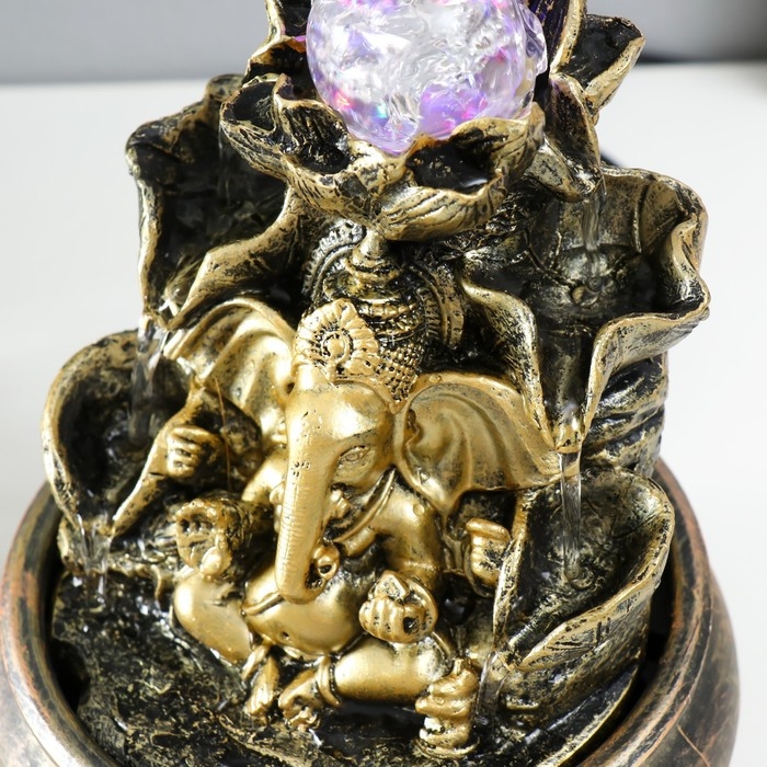 Фонтан настольный с подсветкой "Ганеша у фонтана с лотосом" 16х16х21 см