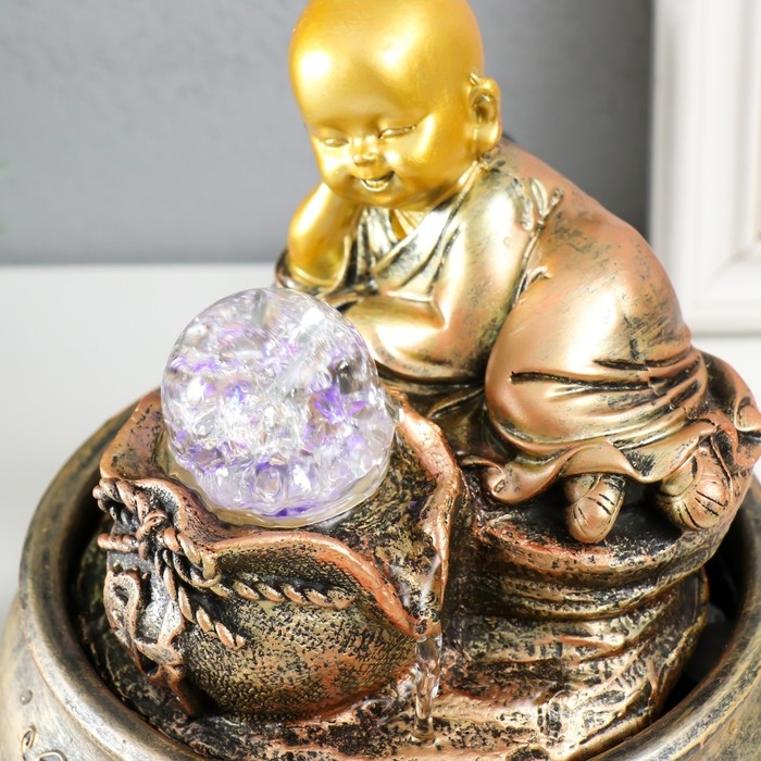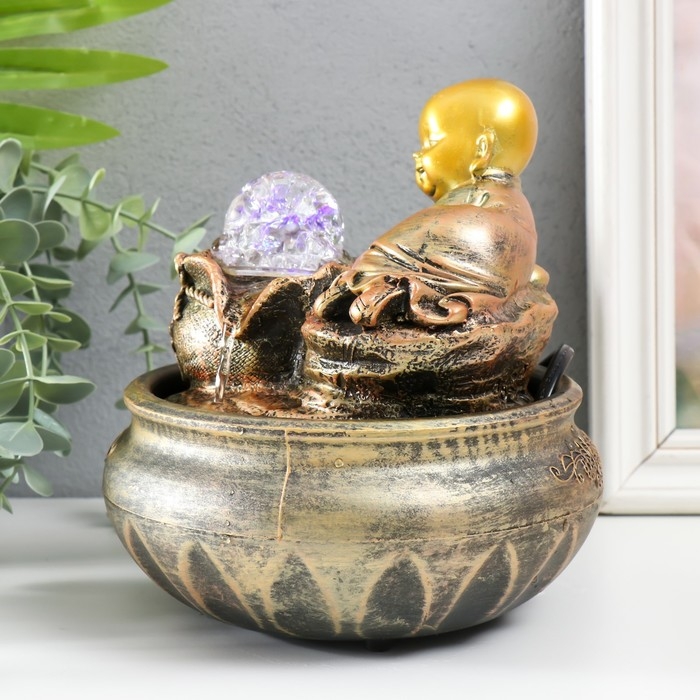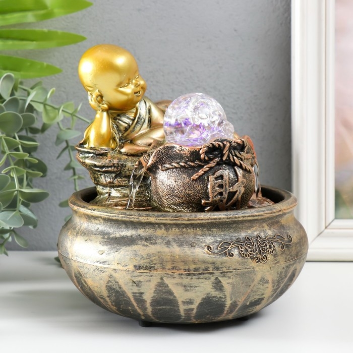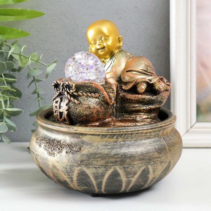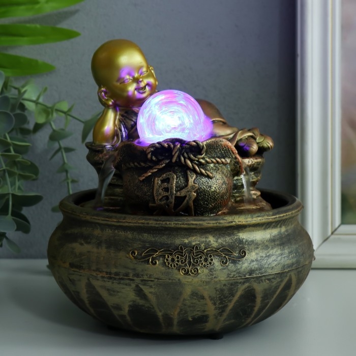 Фонтан настольный с подсветкой "Маленький Будда с мешком" 16х16х18 см