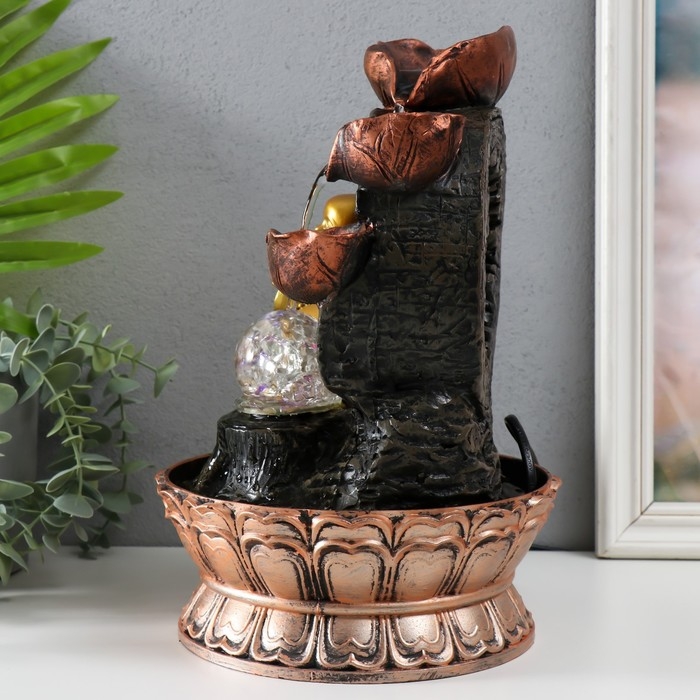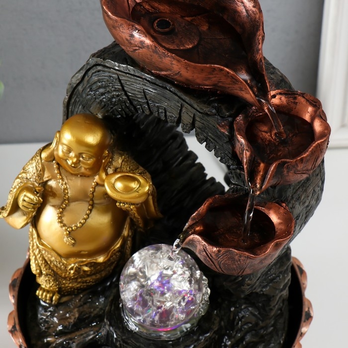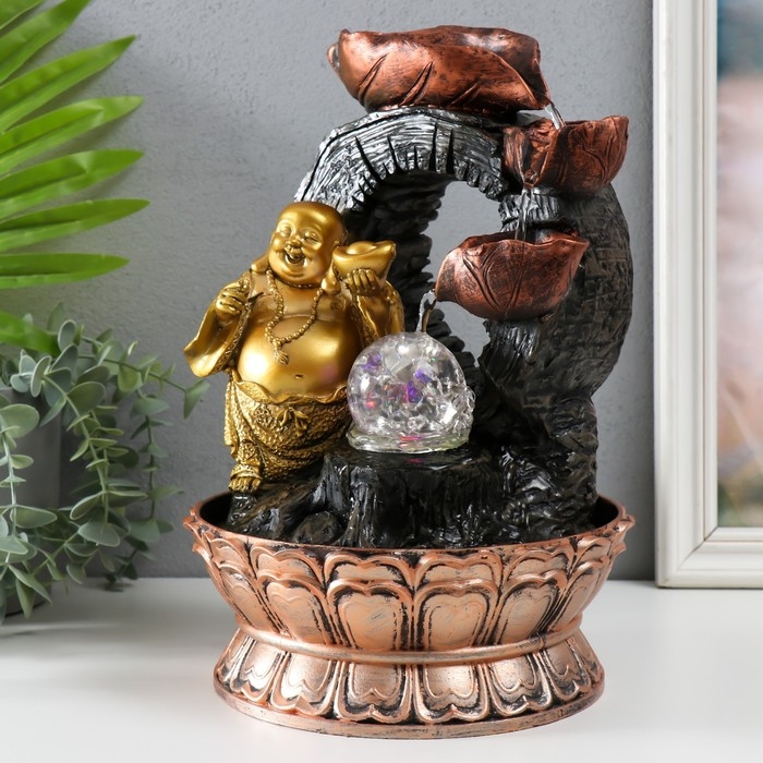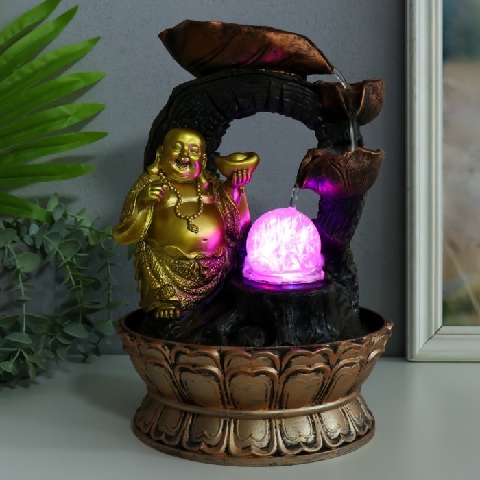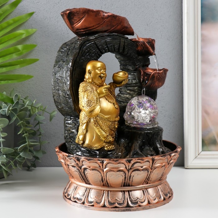 Фонтан настольный с подсветкой "Золотой хотей со слитком у деревянной арки" 20,5х20,5х30 см 968017