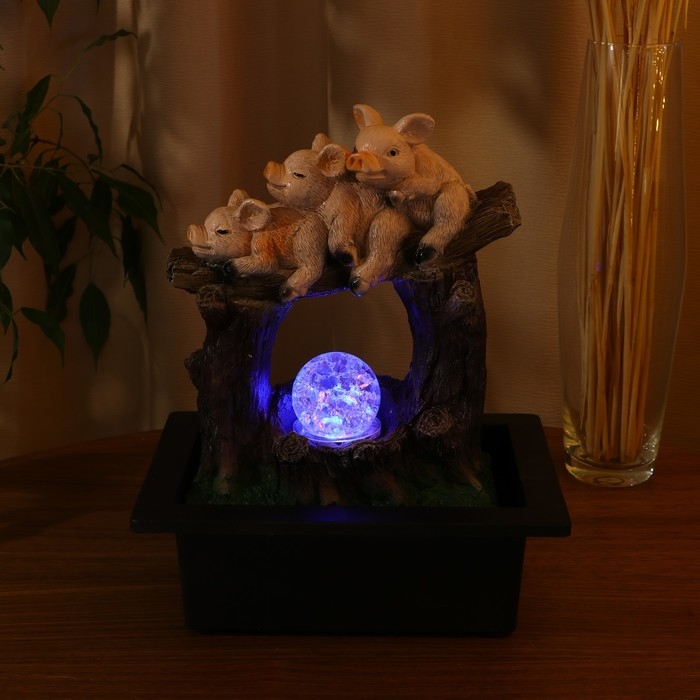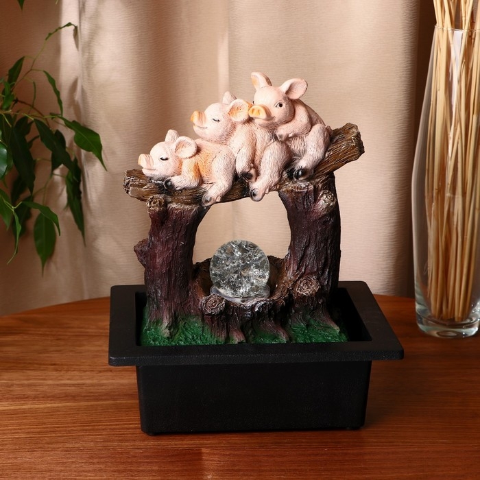 Фонтан "Поросятки на бревне" 16х20х26 см (с подсветкой)
