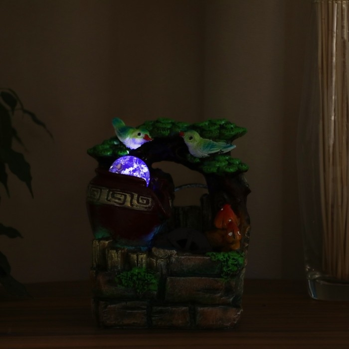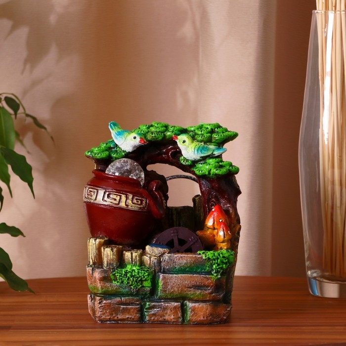 Фонтан "Птички у мельницы, кувшин с рисунком" 10х14х19 см (с подсветкой)