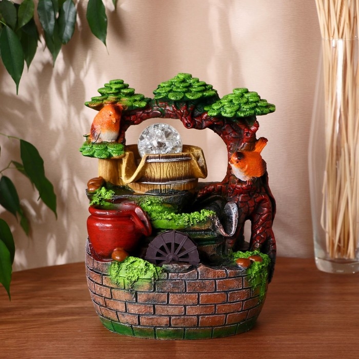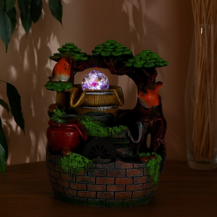 Фонтан "Птички у мельницы за каменной стеной" 18х14х26 см (с подсветкой)