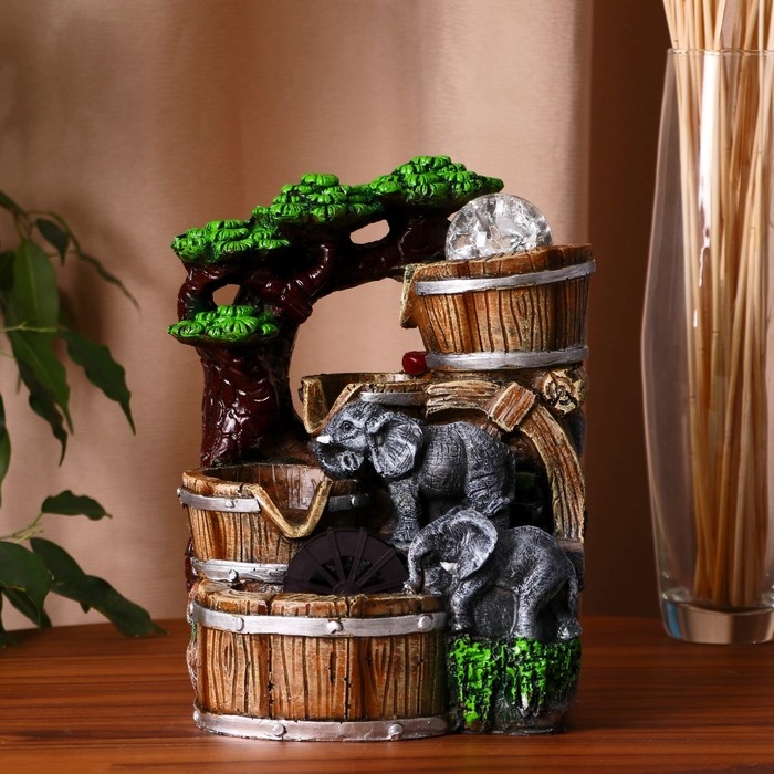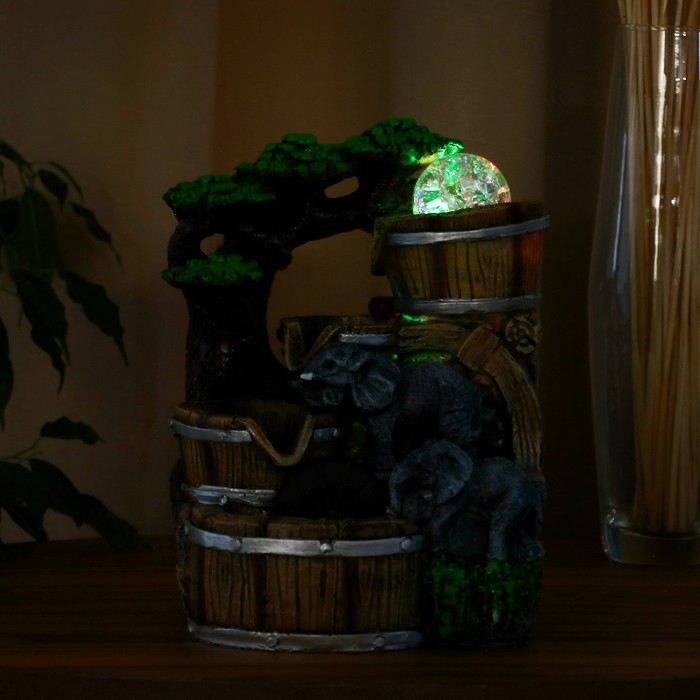 Фонтан "Слоники под деревом, бочки" 12х15х24 см (с подсветкой)