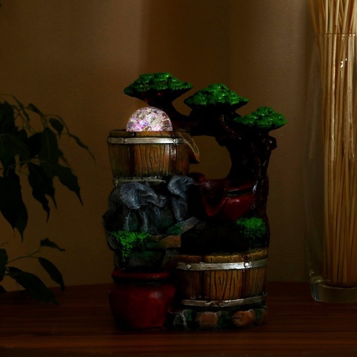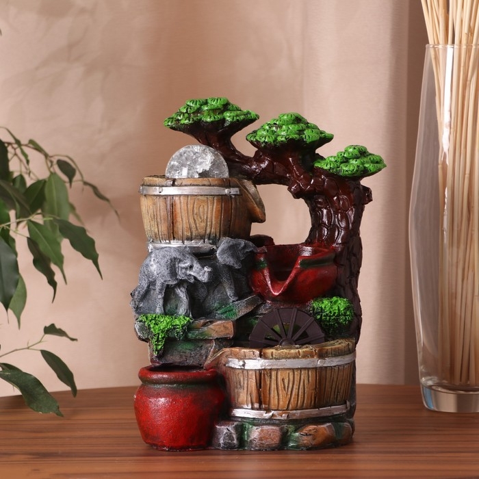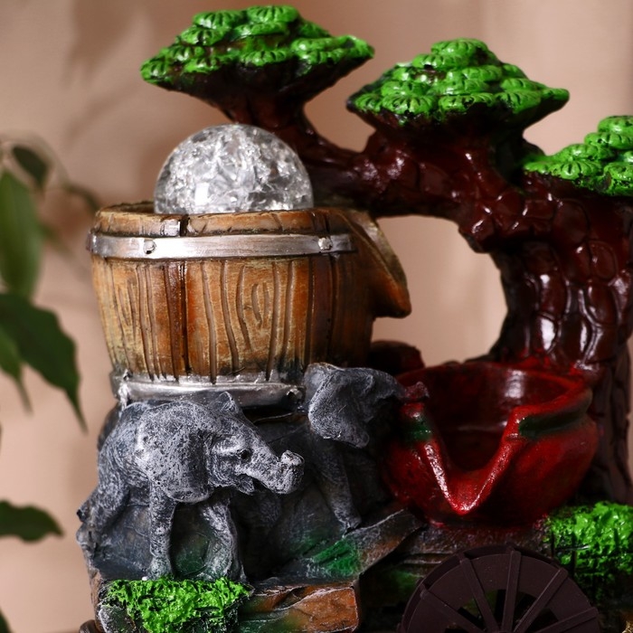 Фонтан "Слоники под деревом, бочки и кувшины" 12х15х24 см (с подсветкой)