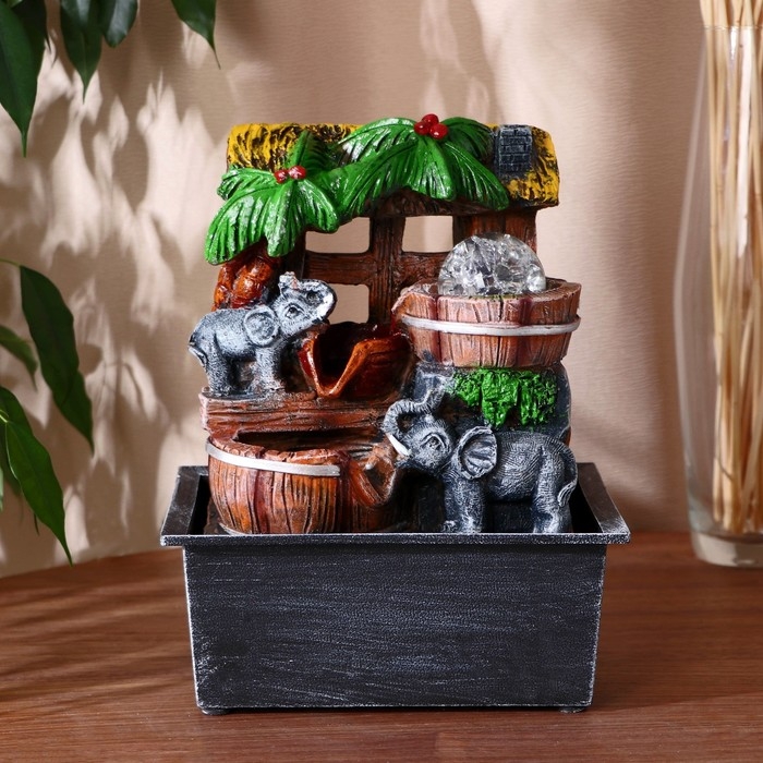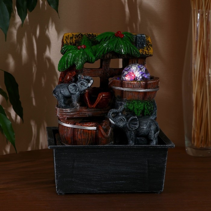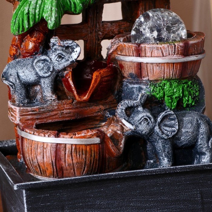 Фонтан "Слоны под пальмами у забора" 19х13х26 см (с подсветкой)