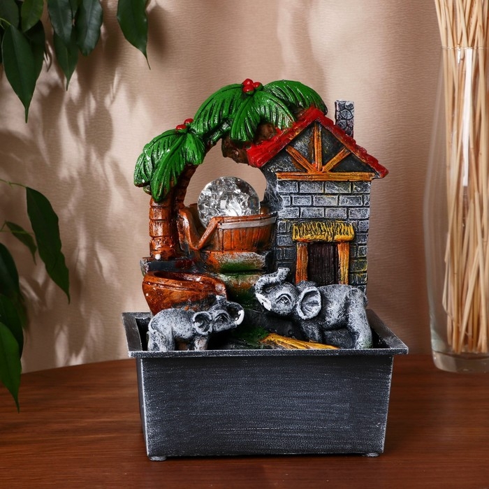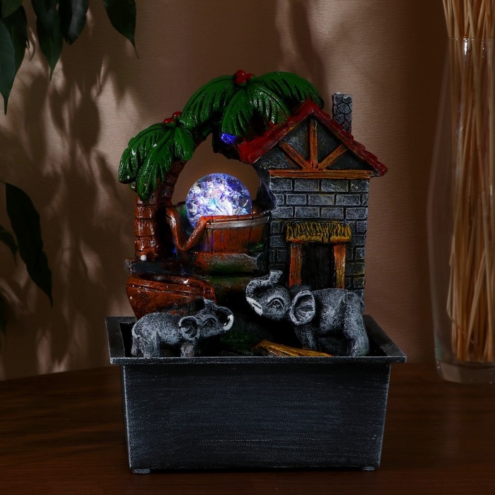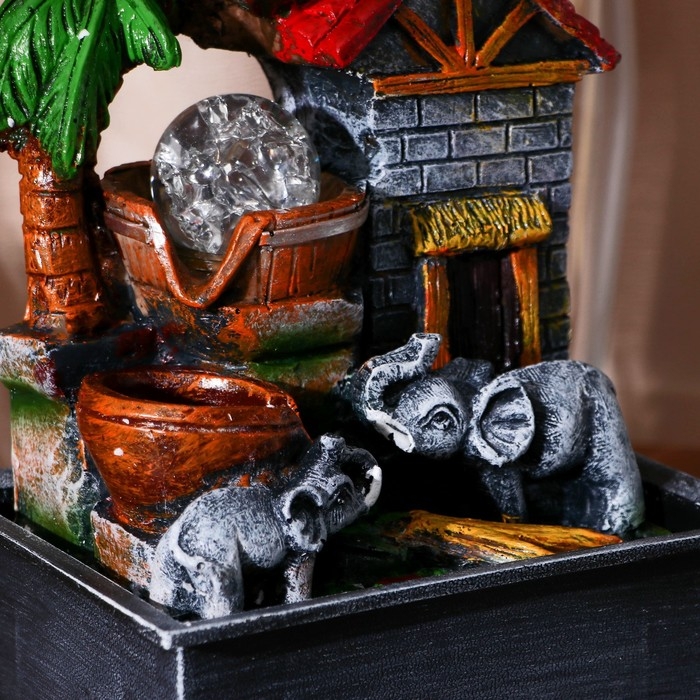 Фонтан "Слоны у дома под пальмами" 19х13хх26 см (с подсветкой)