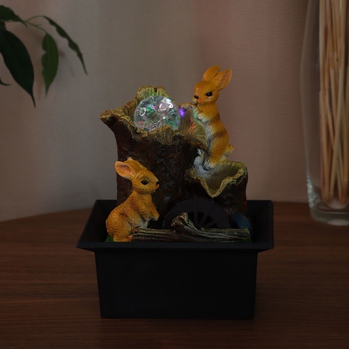 Фонтан "Зайчики на брёвнышках" 22х16 см (с подсветкой)