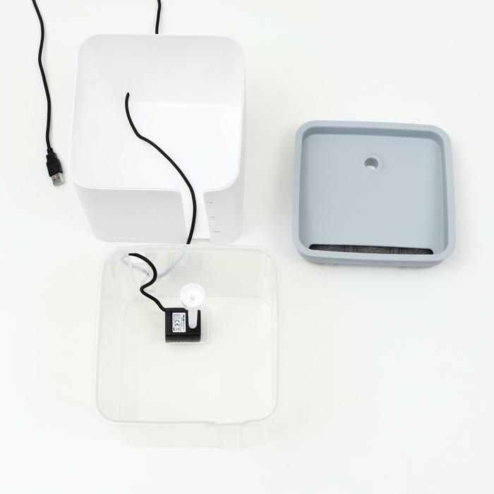 Фонтанчик для животных Carno, 2 л, от USB, бело-серый