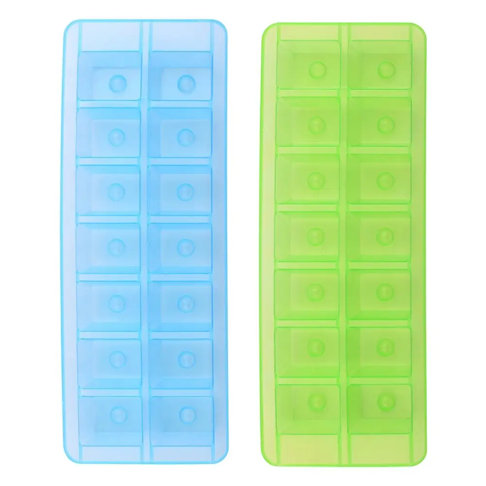 Пластмассовая форма для льда – простой и удобный вариант для заготовки ледяных кусочков для напитков, для замораживания травяных отваров, лимонного сока, листиков мяты и т.п. Чтобы заморозить лед, налейте в ячейки жидкость и поместите в холодильник в горизонтальном положении. Форма имеет 14 ячеек. Таким образом, с помощью нее вы сможете приготовить 14 кубиков льда для прохладительных напитков или для косметических целей. Перед и после использования промыть в проточной воде с жидкими моющими средствами. Изготовлено из пластмассы (полипропилен). Размер 23,5х9см.