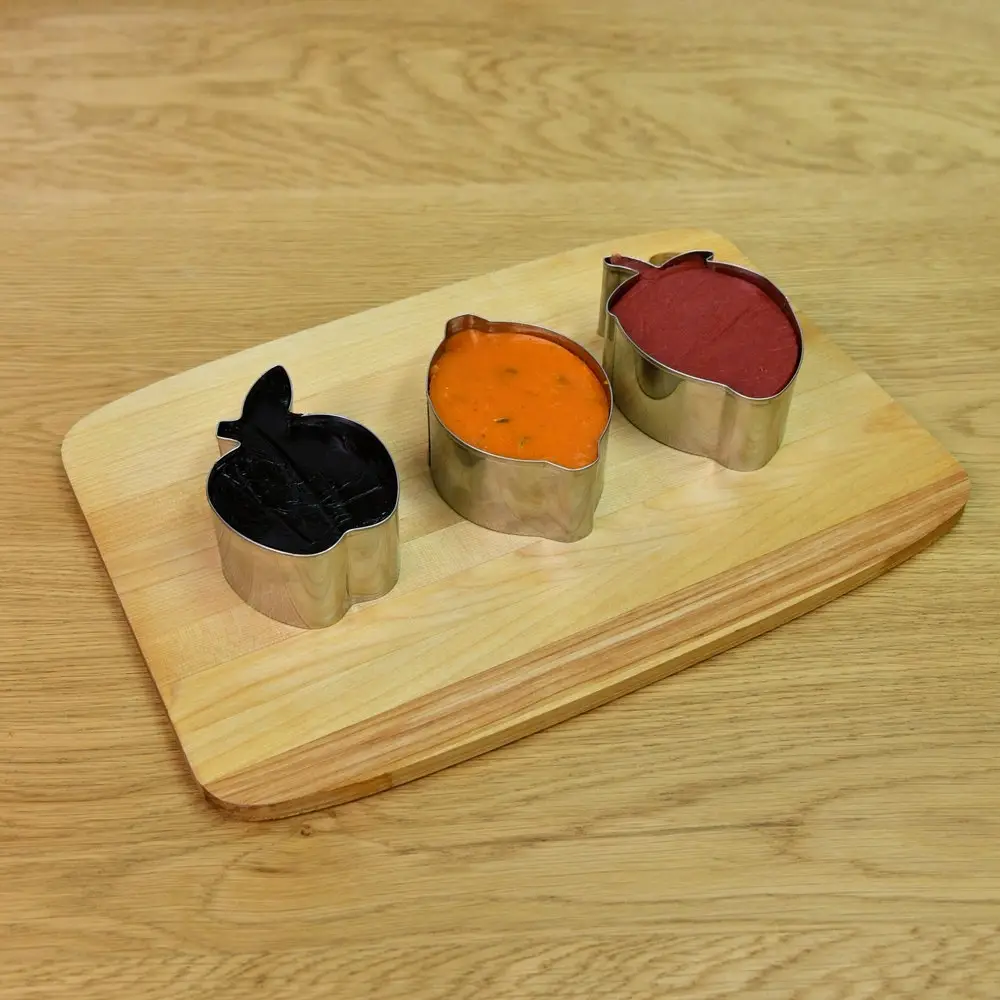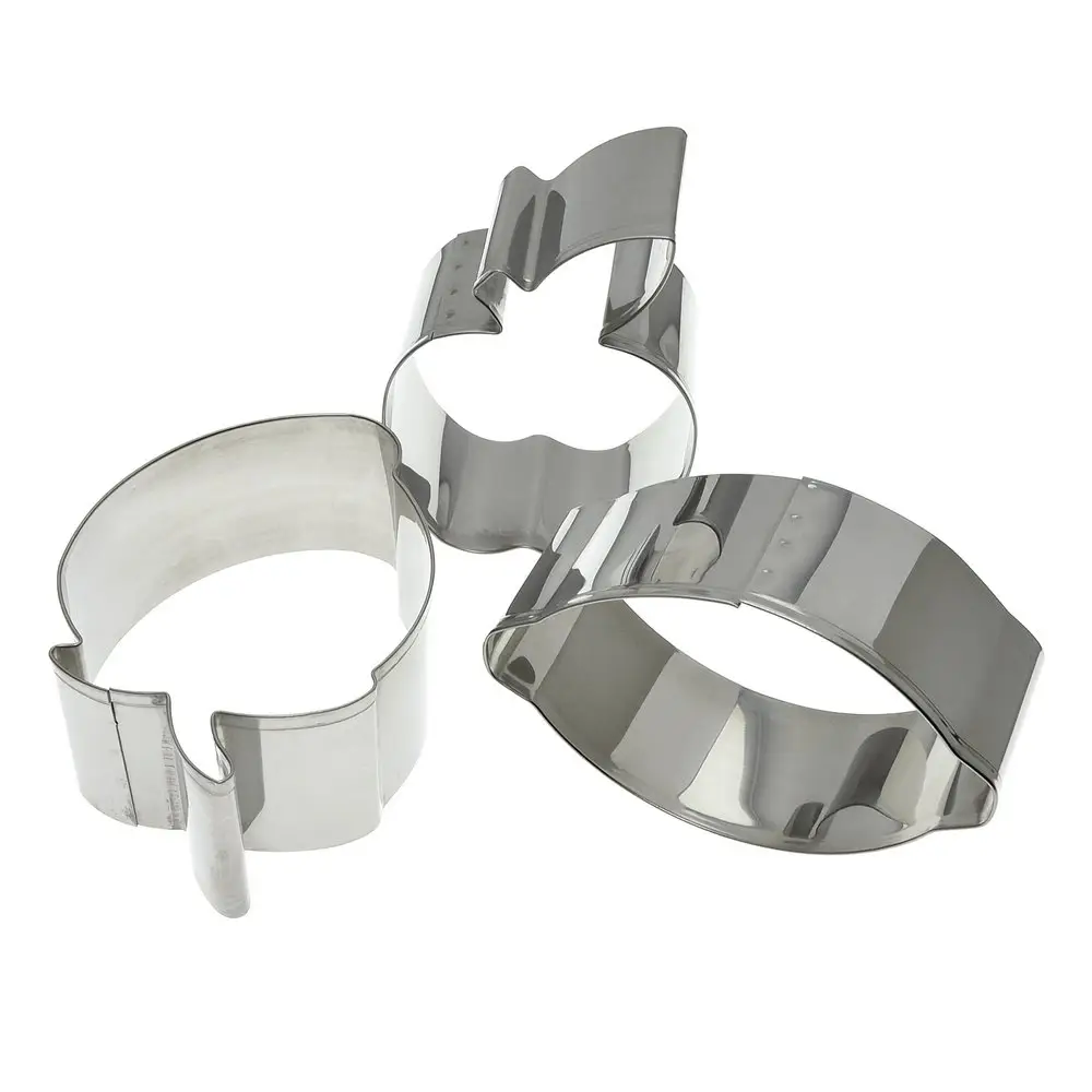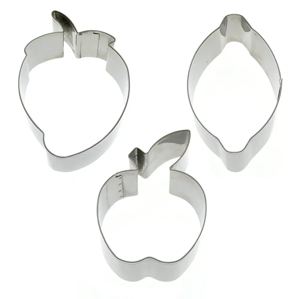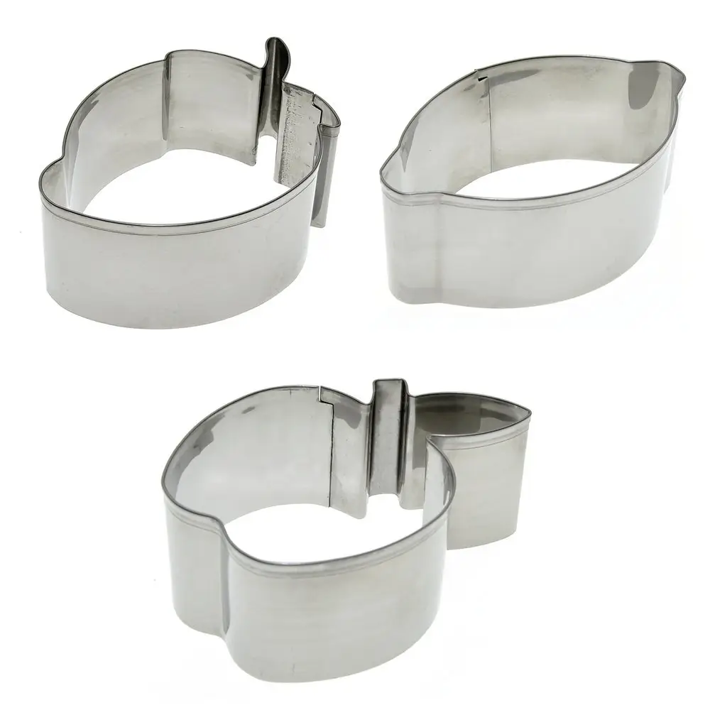 Форма для выпечки – удобный и незаменимый инструмент в арсенале каждой хозяйки для повседневного использования и подготовки праздничного стола. Формы используются для вырезания бисквитов, печенья из теста, приготовления десертов и пирожных, для оформления блюд, выкладки салатов, сборки бутербродов, жарки омлета или яичницы. Применение форм при сервировке позволит удивить гостей эффектными шедеврами кулинарного искусства. Вы сможете красиво подать на стол практически любые блюда и закуски. Перед первым использованием и после каждого применения помыть в тёплой воде, можно с жидким моющим средством, сполоснуть проточной водой и просушить. Можно мыть в посудомоечной машине. Изготовлено из коррозионностойкой (нержавеющей) стали. Размеры: «Клубника» 9,5х7 см, высота 4 см, «Лимон» 10х6,5 см, высота 4 см, «Яблоко» 10х7 см, высота 4 см.