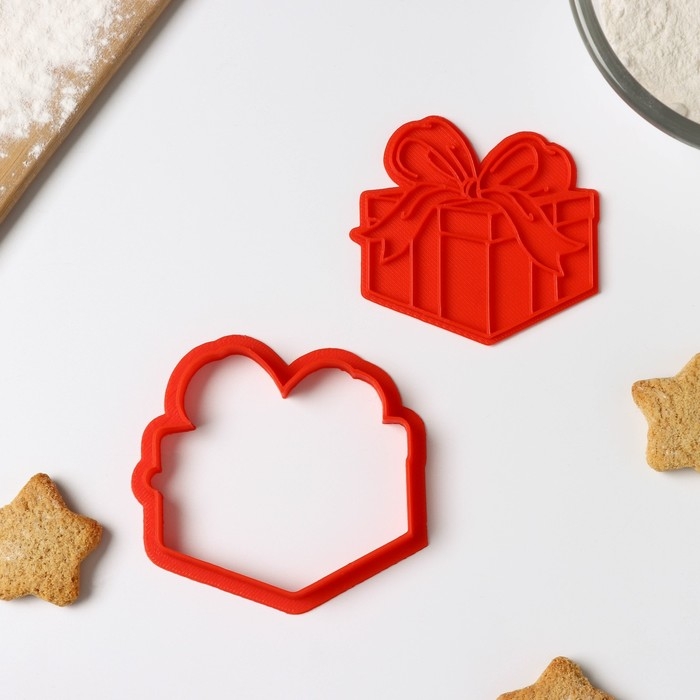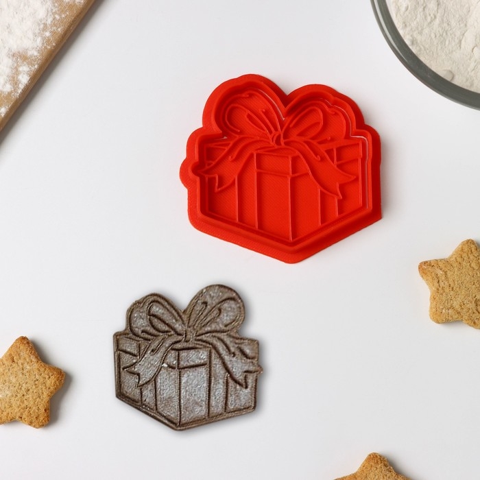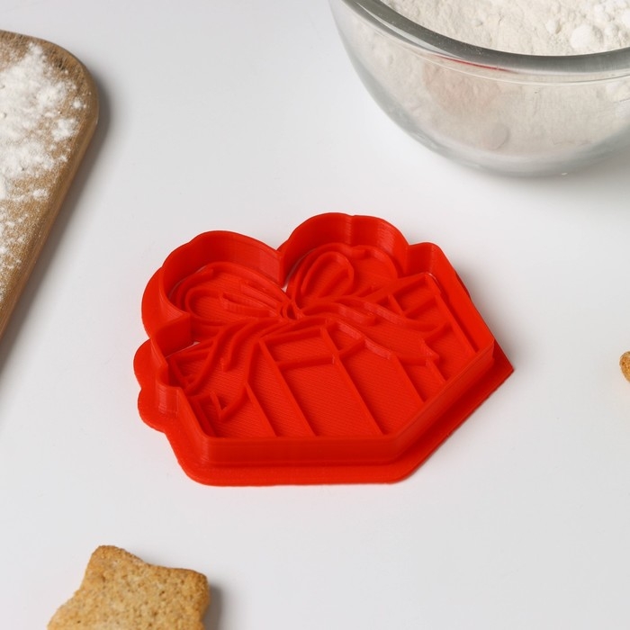 Форма для печенья «Подарочная коробка», вырубка, штамп, цвет красный