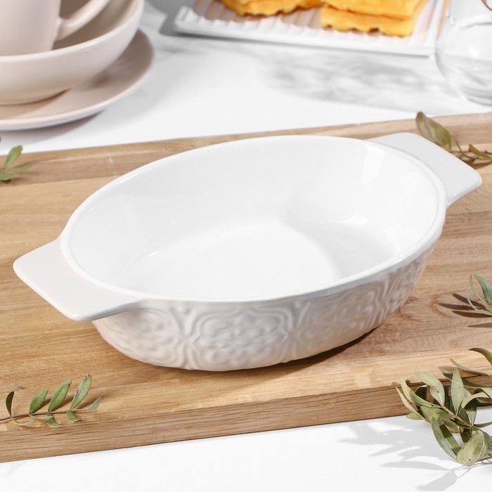 Форма для выпечки из жаропрочной керамики Доляна «Орнамент», 28×16,7×6 см, 1 л, цвет белый
