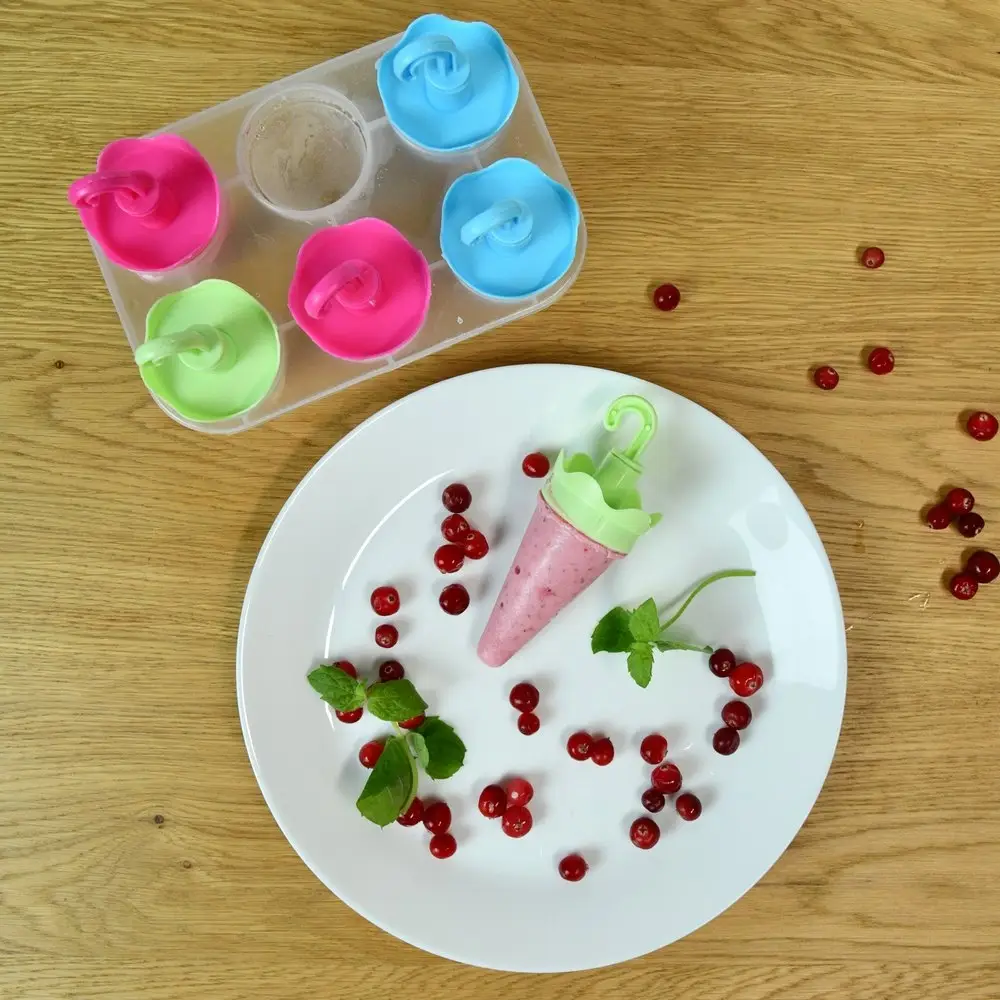 Вкусное мороженое может быть ещё и полезным, когда вы сами подбираете ингредиенты и готовите десерт своими руками. Это может быть йогурт, сливки, молоко, замороженный сок или фруктовое пюре – существует множество сочетаний, которые не оставят вас равнодушными. Форма для мороженого позволяет одновременно приготовить 6 порций освежающего десерта – на праздник, в обычный день или в качестве угощения для детей.