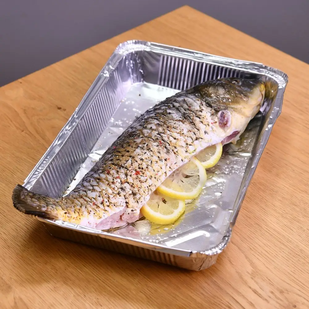 Алюминиевые формы для выпечки имеют массу достоинств: • не нужно мыть после использования, следовательно, тратить время; • алюминий обеспечивает равномерное нагревание, содержимое одинаково пропекается со всех сторон; • не разрушаются при заморозке и нагревании, диапазон рабочих температур от -40 до +280 градусов; • подходят как для духовки, так и для микроволновой печи; • препятствуют высыханию пищи, предохраняют продукты от попадания солнечного света. Формы отлично подойдут для запекания блюд, хлебобулочных изделий, кексов, омлетов, заливных. Материал не токсичен, не накапливается в организме человека, не вступает в химические реакции с пищей. ВНИМАНИЕ! Не храните в формах кислые и соленые продукты. При использовании форм в СВЧ-печах соблюдайте правило: стенка должна быть расположена в СВЧ-печи минимум на 2см от стенок печки или от другой посуды из алюминиевой фольги. Размер 29х20х4,5 см, объем 2235 мл.