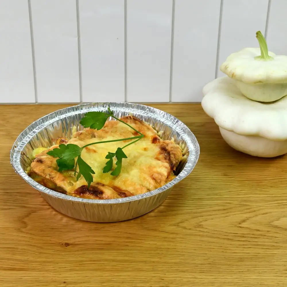 Простое и очень нужное приспособление на любой кухне — одноразовые формы для выпечки. С ними вы обеспечите настоящий комфорт во время приготовления еды, ведь вам не придется мыть посуду. Еще одним преимуществом изделия является то, что их можно использовать в духовке и в микроволновой печи, нагревать до 280°С и замораживать до -40°С. Формочки подойдут для выпекания хлебобулочных изделий, приготовления мяса, запекания овощей и т.д. Готовые блюда отлично смотрятся в фольге, поэтому их совсем не обязательно перекладывать в специальную посуду. Алюминиевая фольга хорошо подходит для хранения готовой продукции, она не пропускает солнечные лучи, препятствует попаданию посторонних запахов, не поглощают влагу и жир. Материал не токсичен, не накапливается в организме человека, не вступает в химические реакции с пищей. ВНИМАНИЕ! Не храните в формах кислые и соленые продукты. При использовании в СВЧ-печах соблюдайте правило: форма должна быть расположена в СВЧ-печи минимум на 2 см от стенок печки или от другой посуды из алюминиевой фольги. Диаметр 17 см, высота 4 см, объем 770 мл.