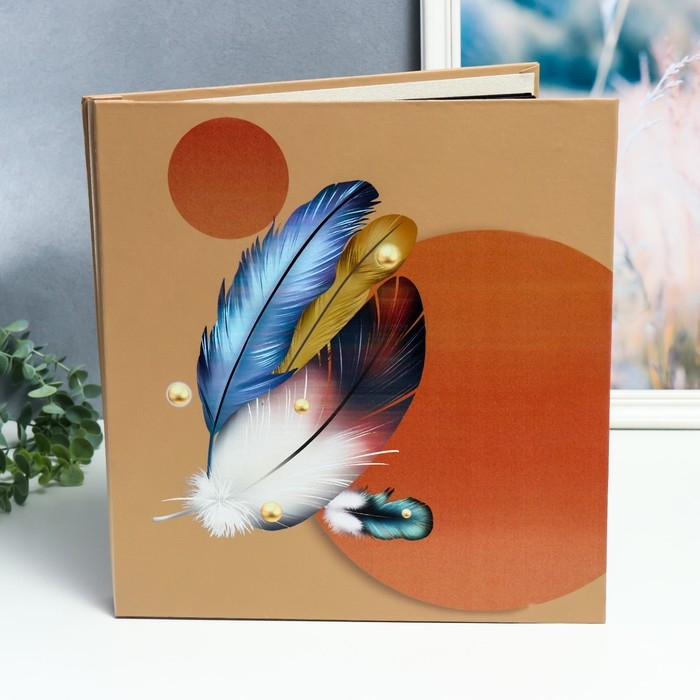 Фотоальбом магнитный 20 листов "Пёрышки и круги" в коробке 34х4х33 см