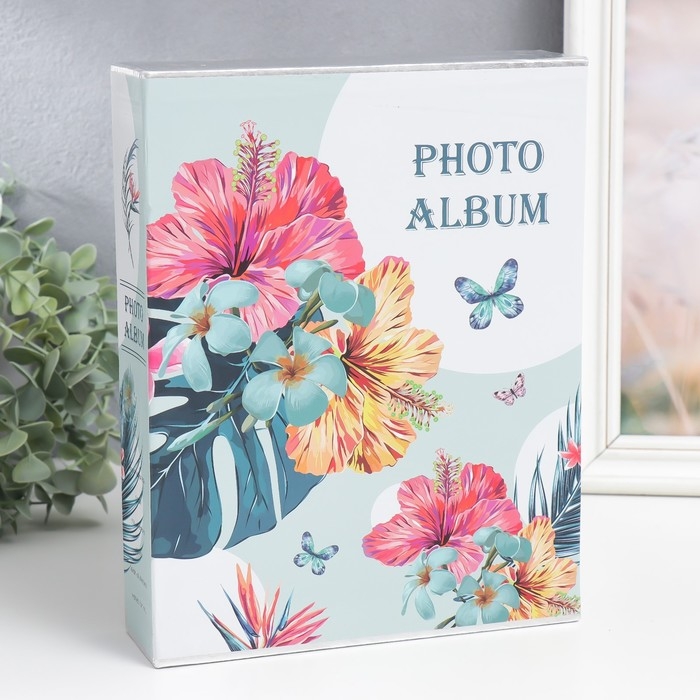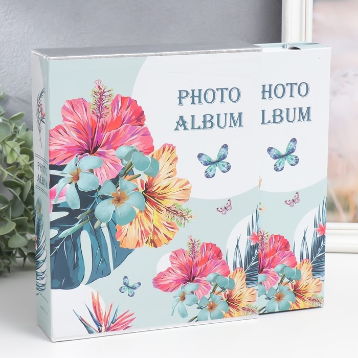 Фотоальбом на 200 фото 10х15 см "Тропические цветы" 5,8х20,5х26 см