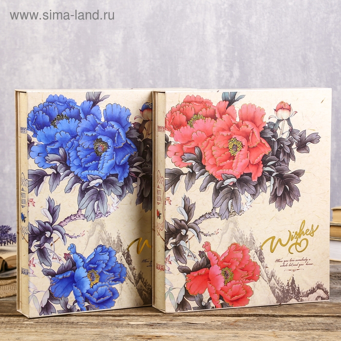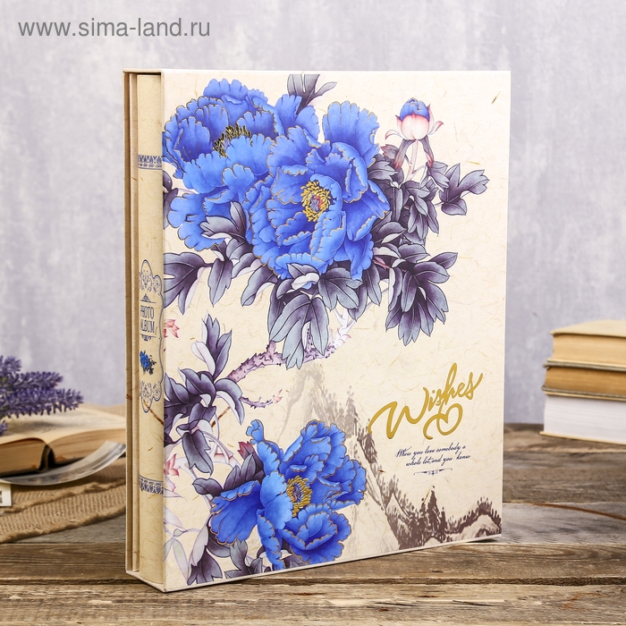 Фотоальбом на 200 фото 13х18 см "Крупные цветы" золот.обвод, в коробке МИКС 33х27,5х5,7 см
