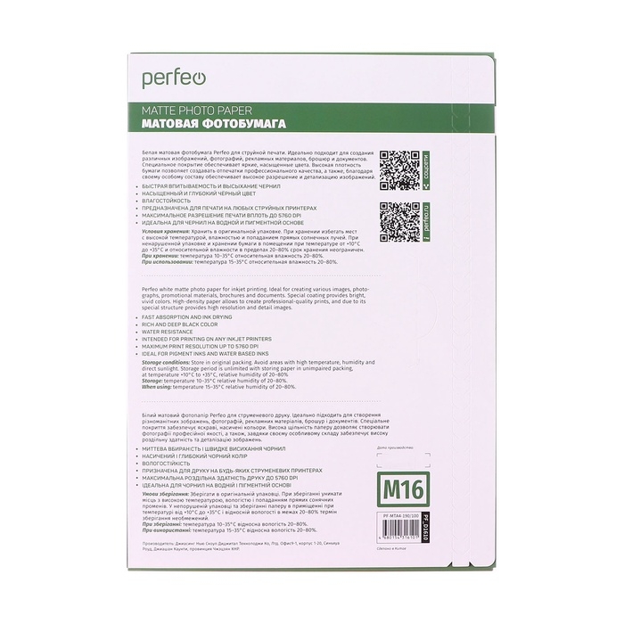 Фотобумага А4 д/струйной печати 100л, 190г/м2, односторонняя, матовая Perfeo