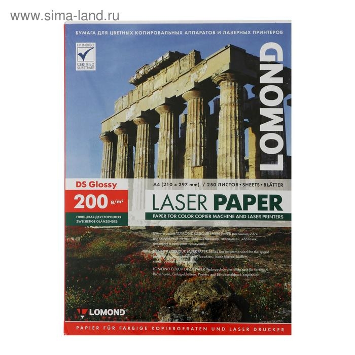 Фотобумага для лазерной печати А4, 250 листов LOMOND, 200 г/м2, двусторонняя, глянцевая