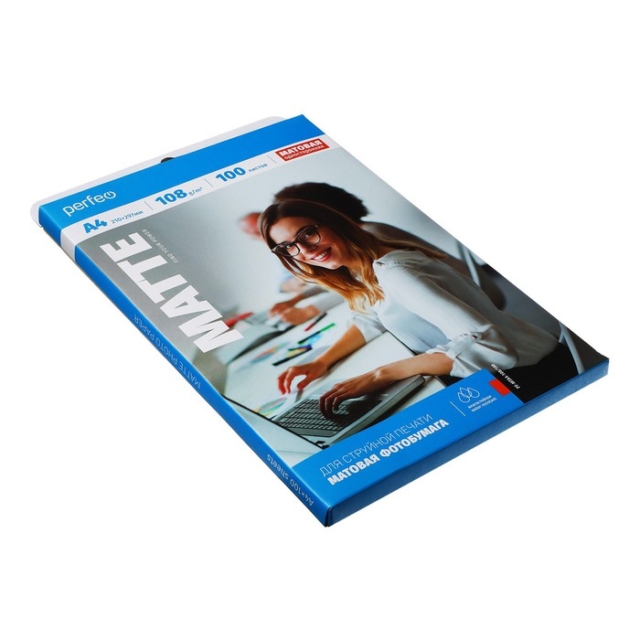 Фотобумага для струйной печати А4, 100 листов Perfeo, 108 г/м2, односторонняя, матовая