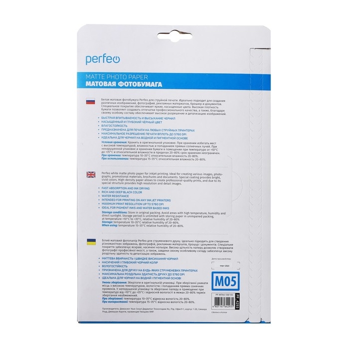 Белая матовая бумага перфео для струйной печати. Идеально подходит для печати отчетов презентаций и других офисных ресурсов. Обеспечивает высокое разрешение и детализацию изображений. Высокое разрешение и детализация. Насыщенный и глубокий черный цвет. Точная цветопередача. Быстрая впитываемость и высыхание чернил. Влагостойкость и антистатичность.