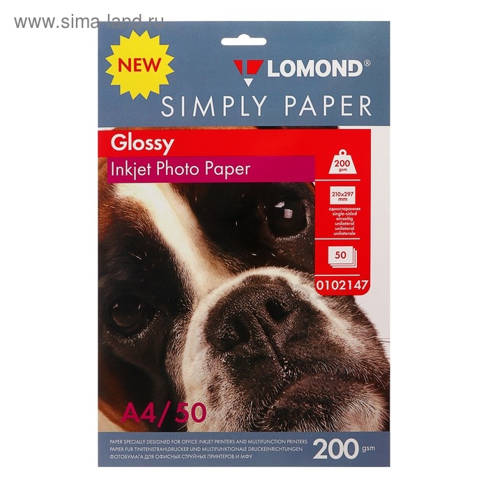 Фотобумага для струйной печати А4, 50 листов LOMOND, 200 г/м2, односторонняя, глянцевая