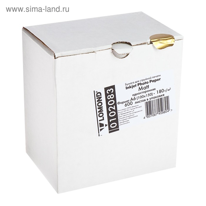 Фотобумага для струйной печати А6 (100 x 150 мм), 600 листов LOMOND, 180 г/м2, односторонняя, матовая