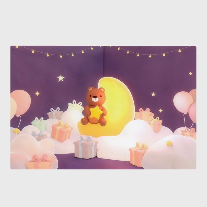 Фотофон винил "Мишка на месяце с подарками" 120х80 см