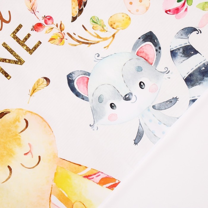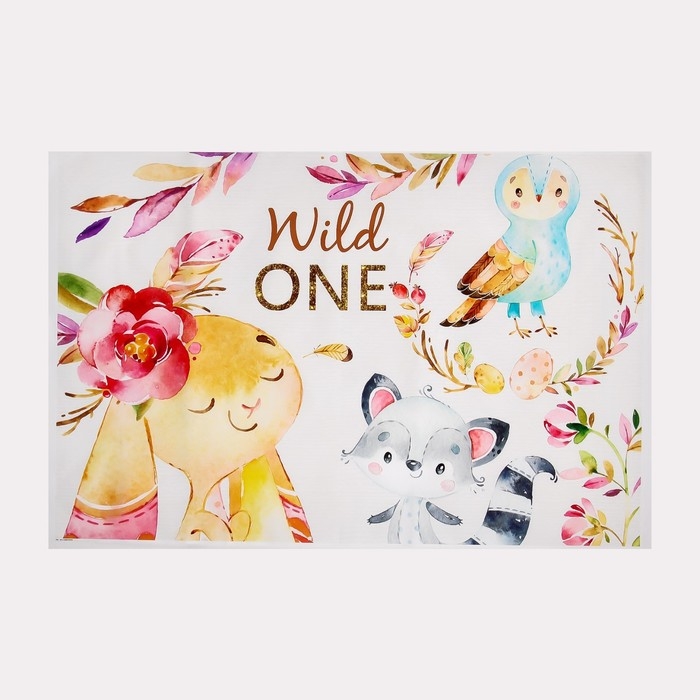 Фотофон винил "Зверята-малыши с цветами" 120х80 см