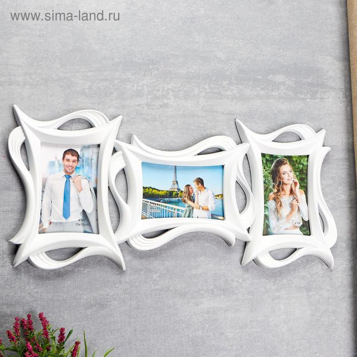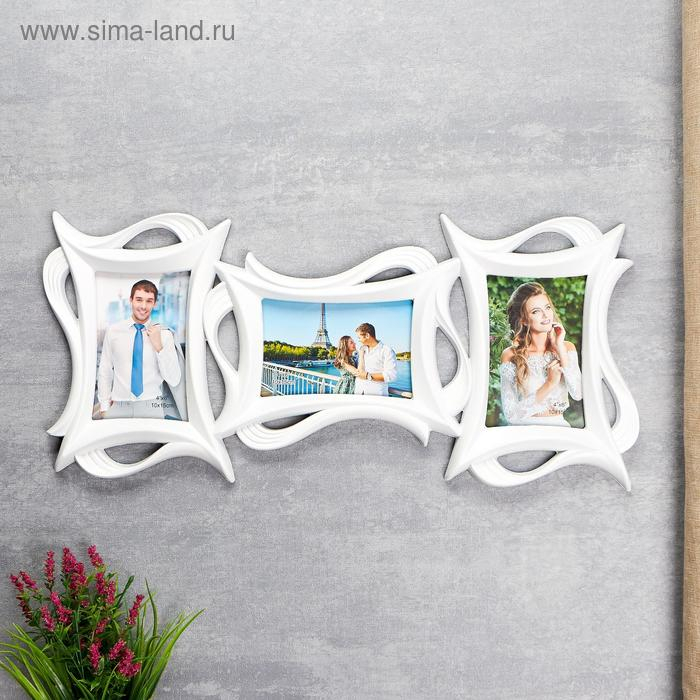 Фоторамка пластик на 3 фото 10х15 см "Плавные линии" белая 26,5х57,5 см