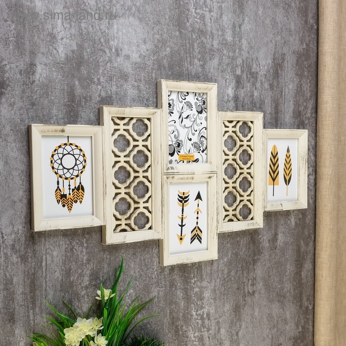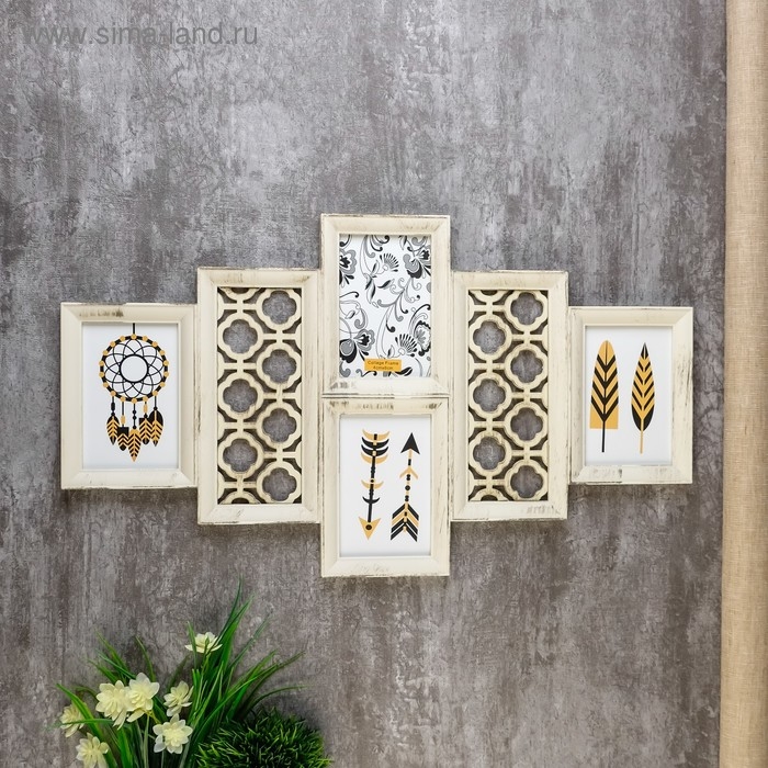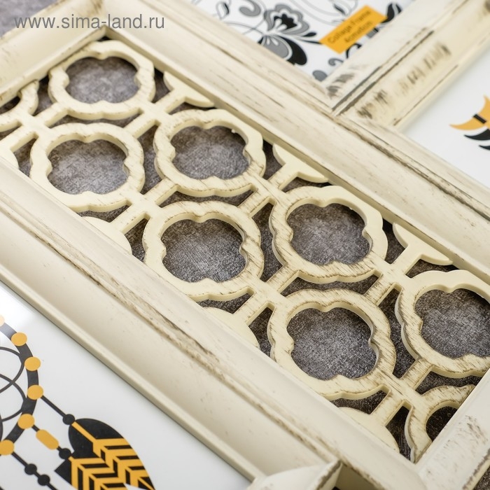 Фоторамка пластик на 4 фото 10х15 см "Узор" бежевая 35х62х2 см