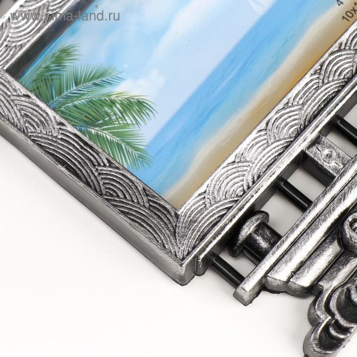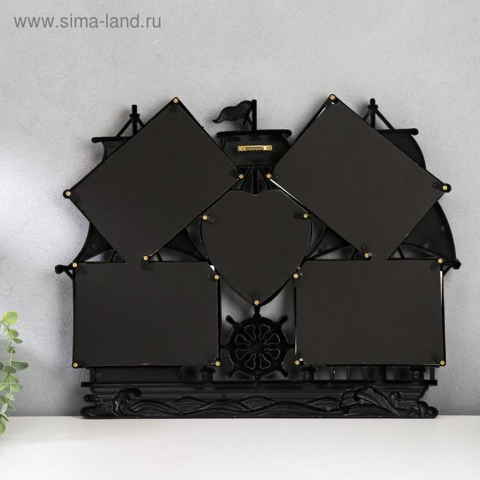 Фоторамка пластик на 5 фото 10х15, 12х12 см "Корабль" тёмное серебро 38х48 см