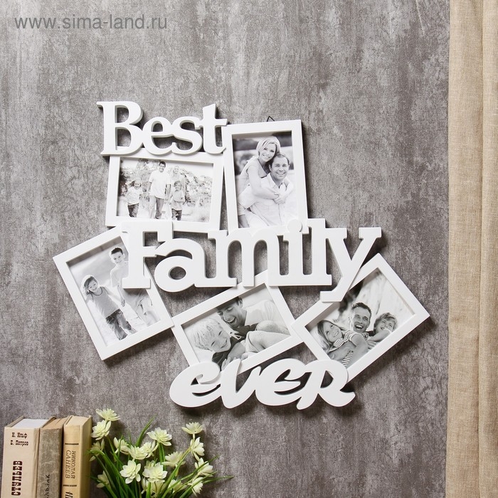 Фоторамка пластик на 5 фото 10х15 см "Лучшая семья" белая 43,5х57 см