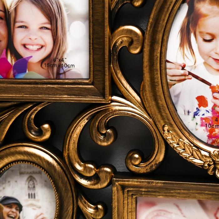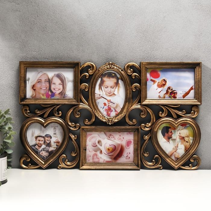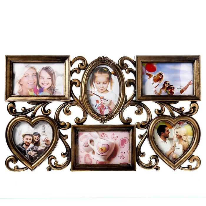 Фоторамка пластик на 6 фото 10х15, 10х10 см "Завитки" золото 31,5х53 см