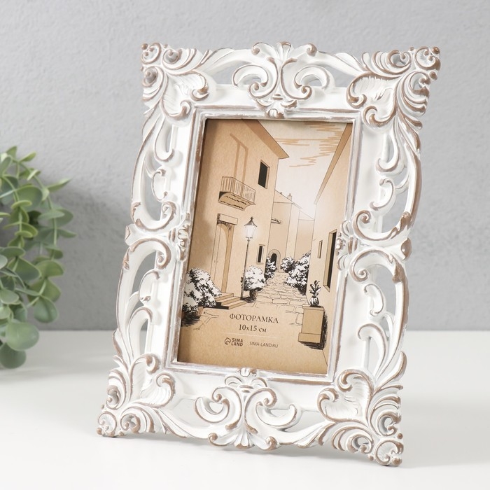 Фоторамка полистоун 10х15 см "Элизиум" белая с патиной 18,1х1,7х23,2 см