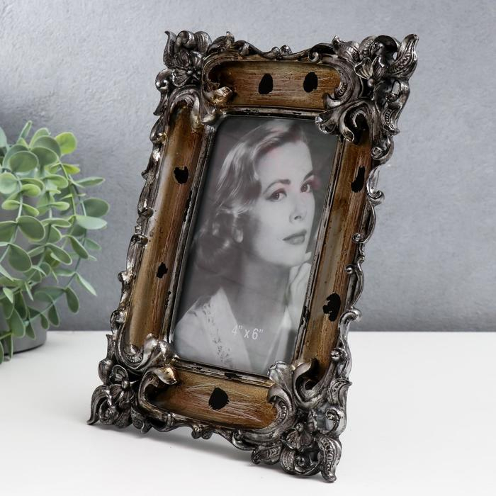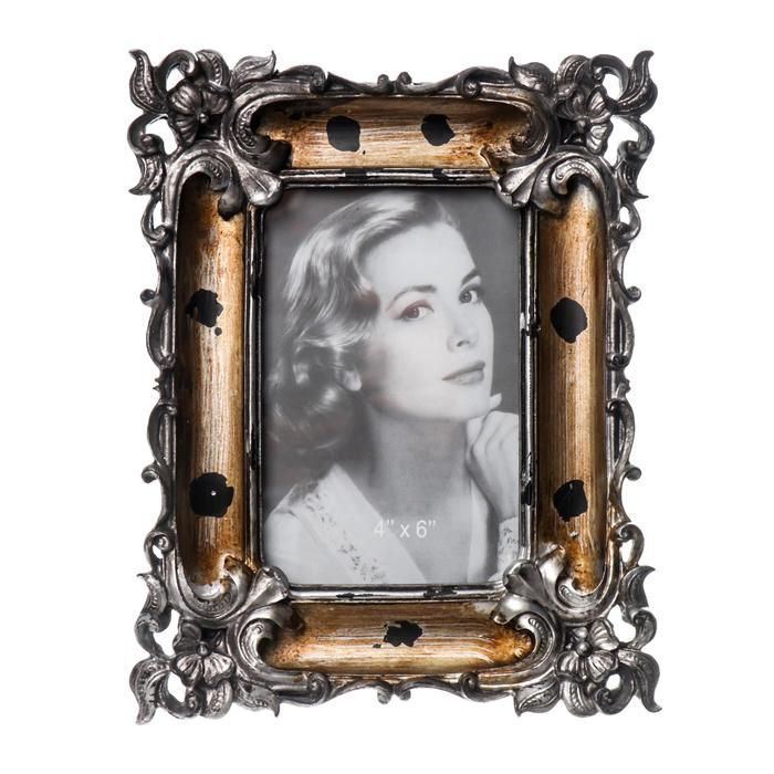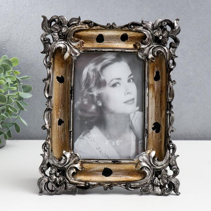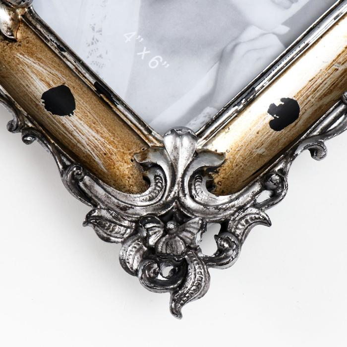 Фоторамка полистоун 10х15 см "Эмануэль" состаренное золото с серебром 23х18,5 см