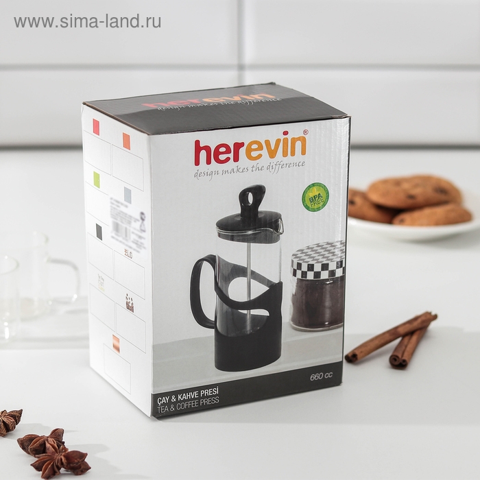 Чайник заварочный френч - пресс Доляна «Оливер», 600 мл, стекло, цвет чёрный
