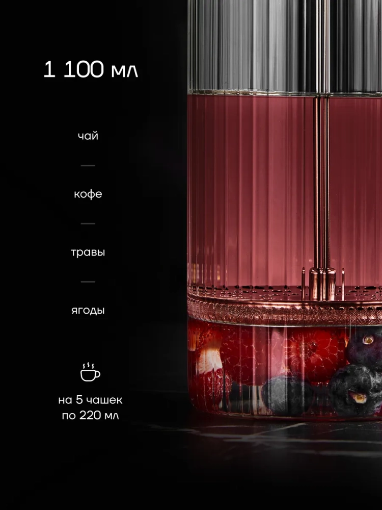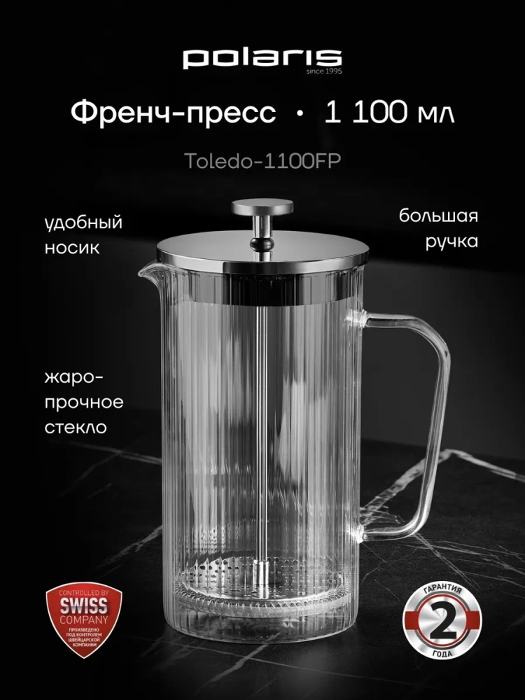 Профессиональный френч-пресс Polaris Toledo 1100FP - это идеальное решение для тех, кто ценит высокое качество и комфорт. Он станет прекрасным дополнением любой кухни и подарит вам истинное удовольствие от процесса приготовления кофе и чая.