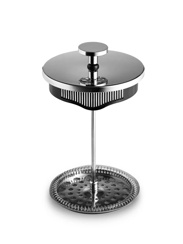 Термостойкий корпус пресса выполнен из жаропрочного односоставного стекла и имеет уникальный дизайн с волнистым обрамлением, придающий ему изысканный и элегантный вид. Эта особенность не только украшает френч-пресс, но и делает его более удобным в использовании. Внутри колбы расположен эргономичный поршень, изготовленный из медицинской нержавеющей стали 18/10, устойчивой к коррозии и обладающей антибактериальными свойствами, что предотвращает размножение микроорганизмов. В отличие от алюминиевых изделий, стальной поршень обеспечивает более гигиеничное использование. Большой объем посуды (1100 мл) позволяет заварить напиток для всей семьи. Для удобства использования в комплекте присутствует мерная ложка.